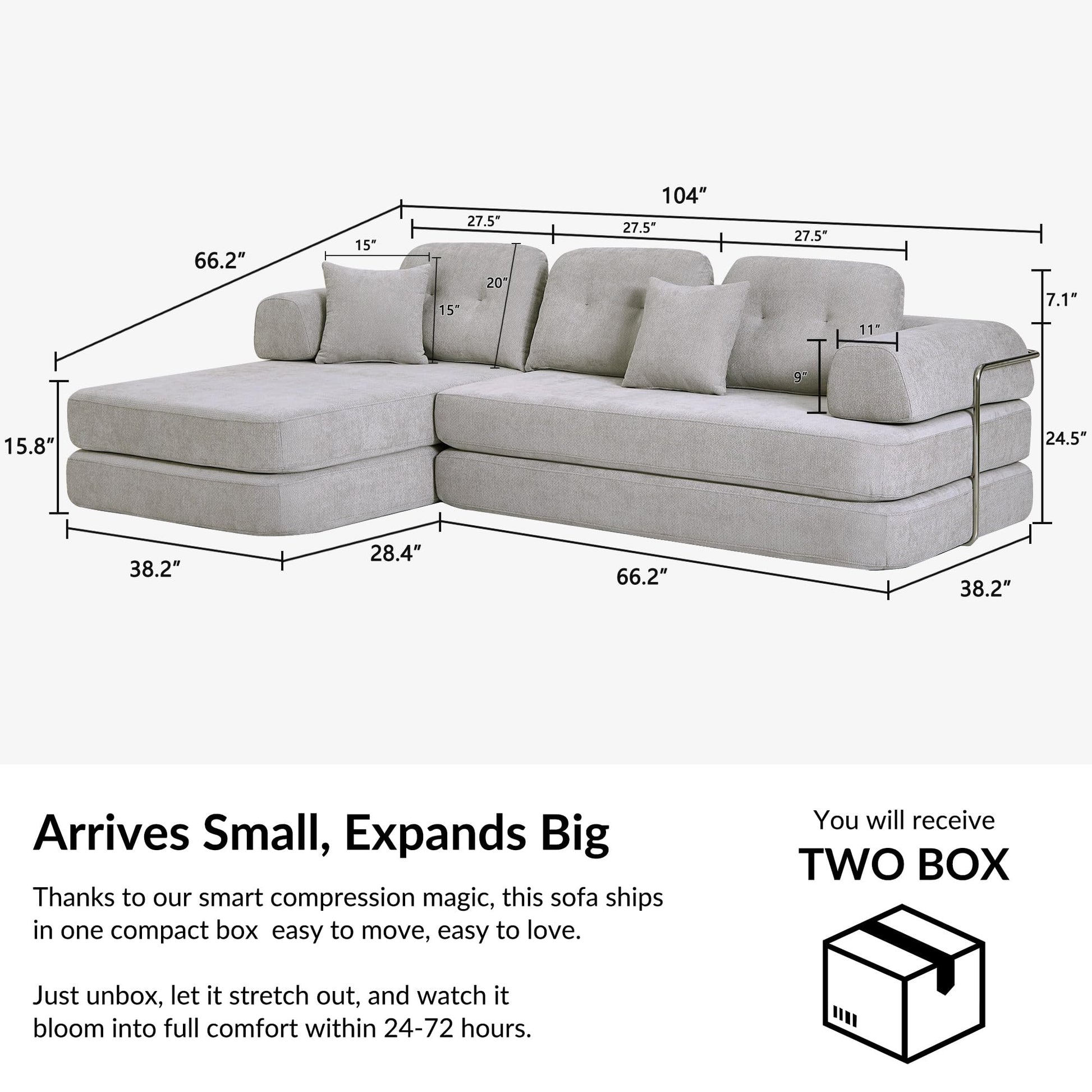 104" Modular Sofa Bed - 8-in-1 Convertible Sectional Couch with High Resilience Sponge