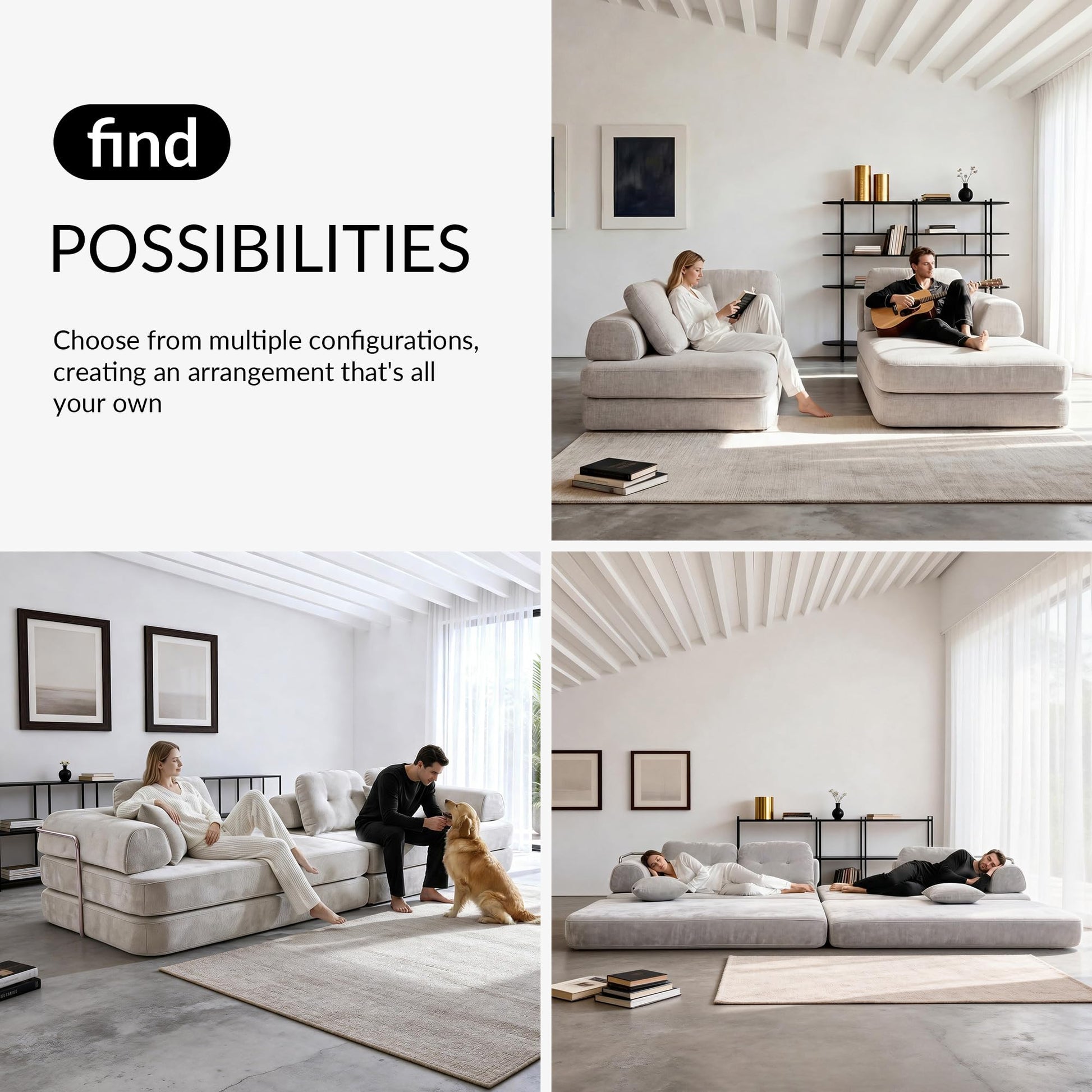 Transform your living space with this versatile modular sofa bed that adapts to your lifestyle. Featuring high resilience sponge cushioning and a modern boneless design, this oversized sectional couch offers exceptional comfort and flexibility for living rooms and apartments.