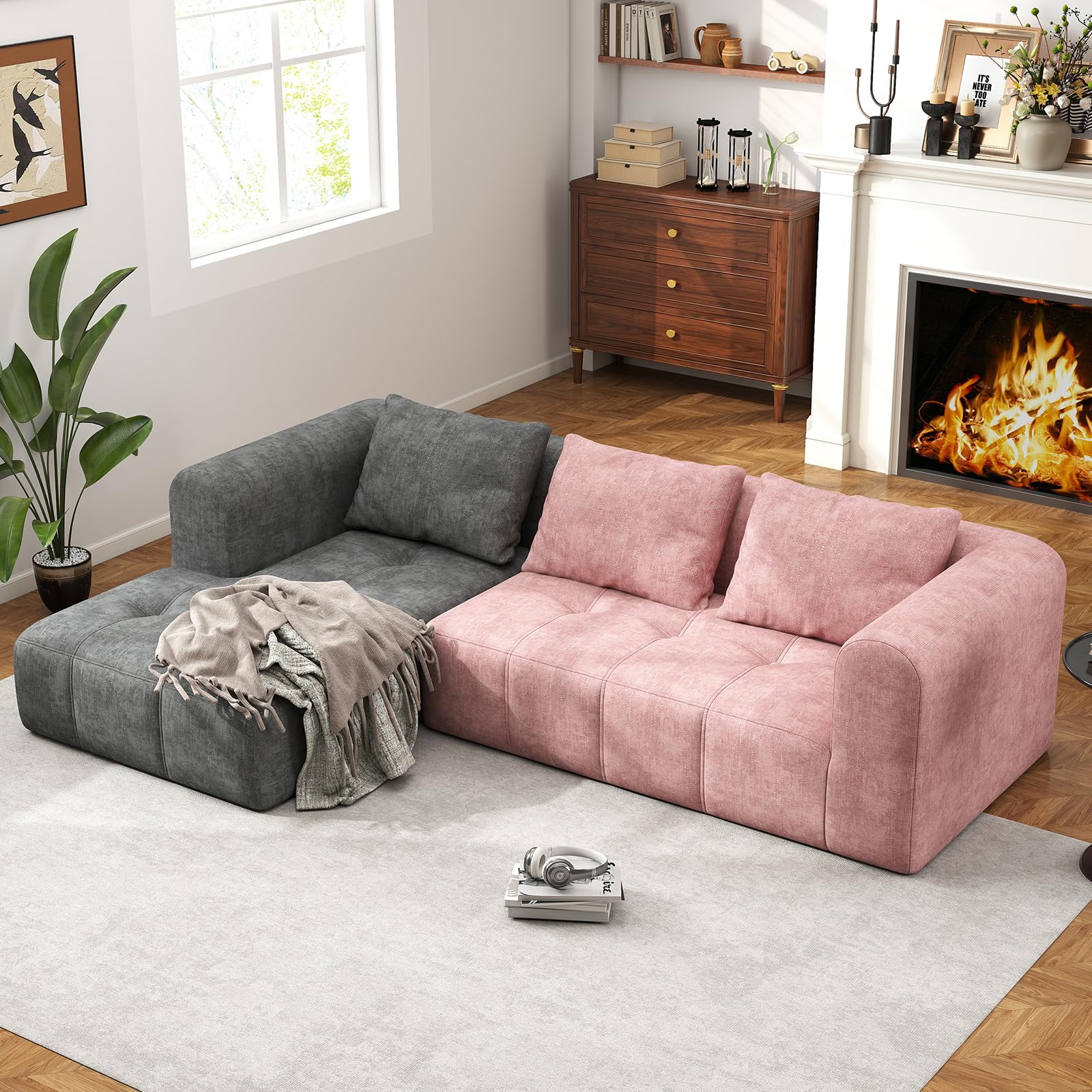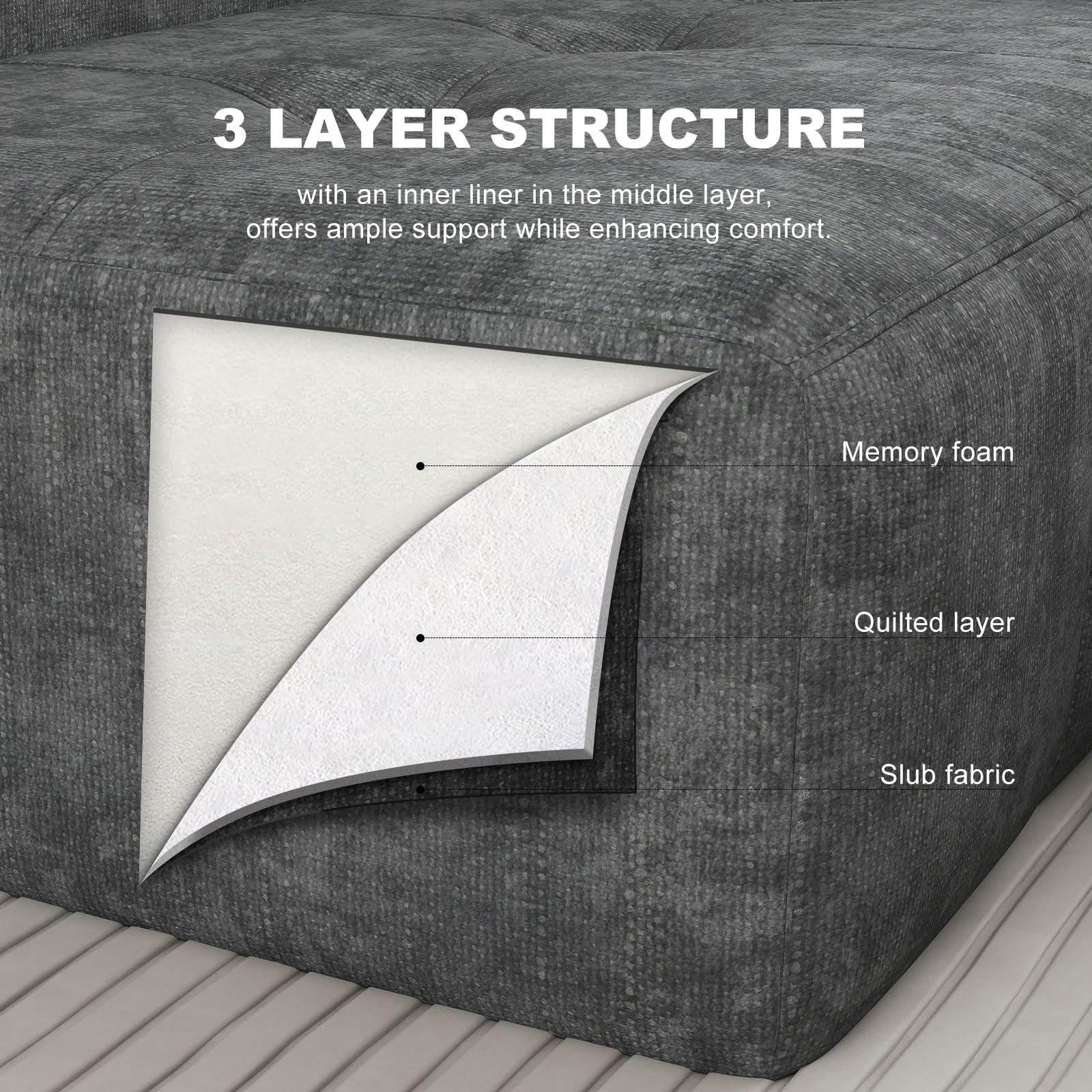 Transform your living space with this versatile modular sectional couch featuring a deep, cloud-like seat for ultimate comfort. The convertible L-shape design adapts to your room layout, while the upholstered slub fabric adds a sophisticated texture. No assembly required – simply unpack and enjoy.