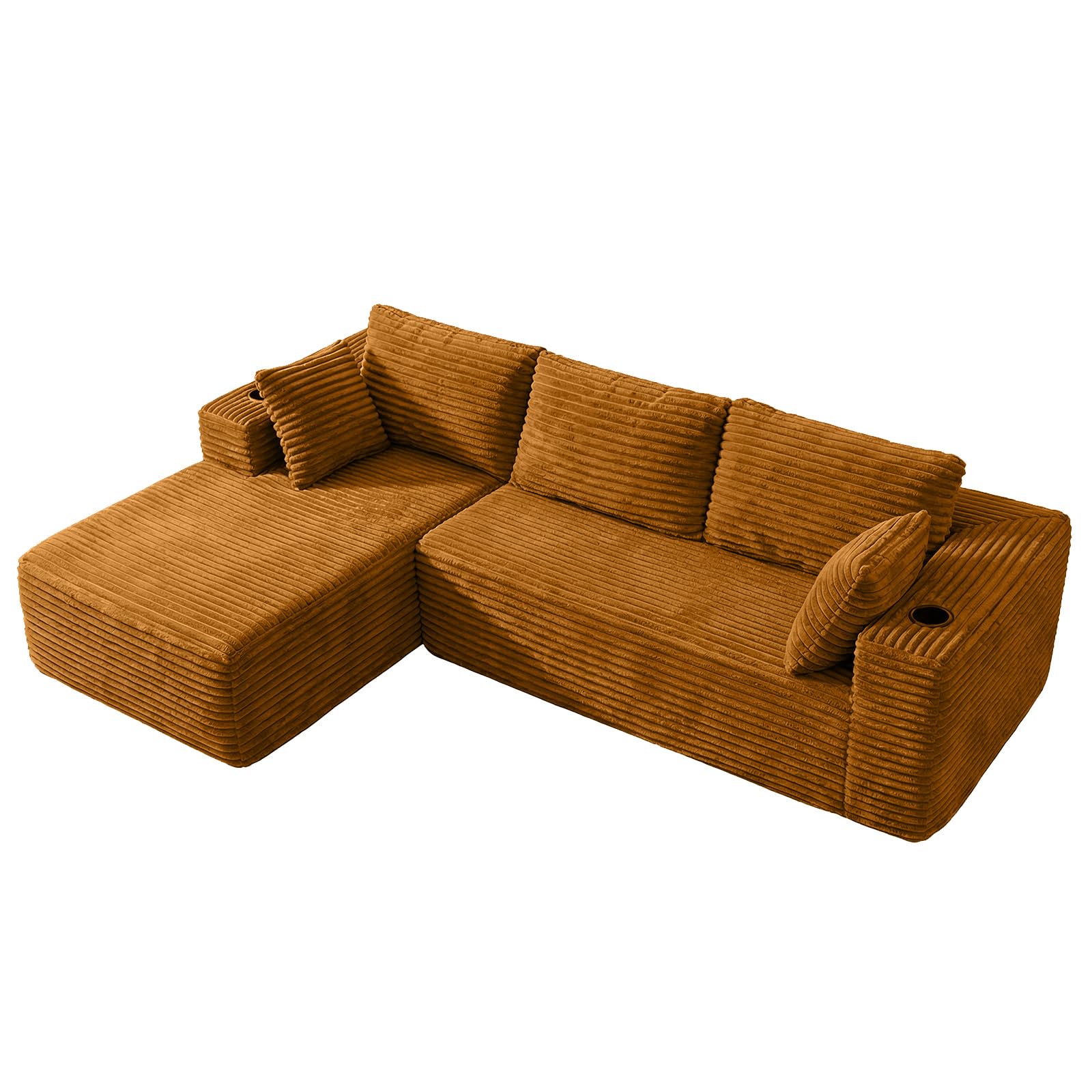 106" Corduroy Modular Sectional Sofa with Cup Holders