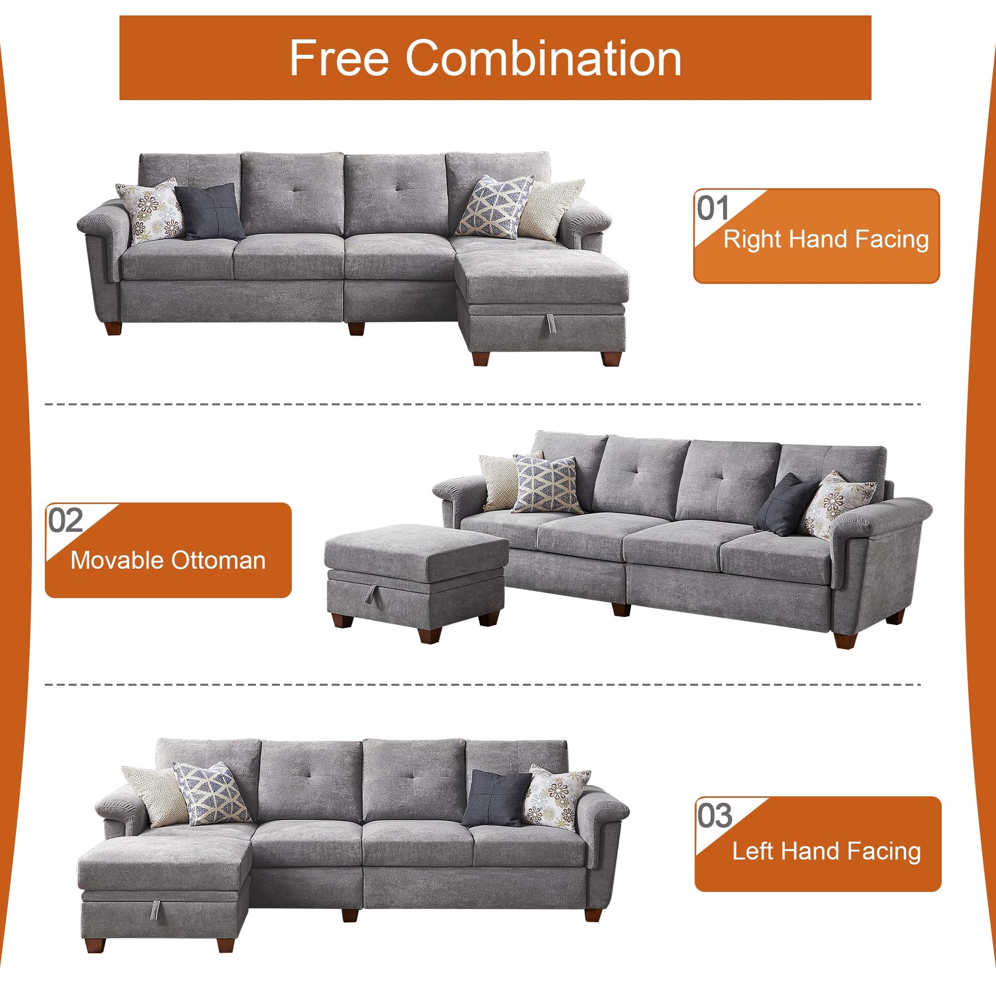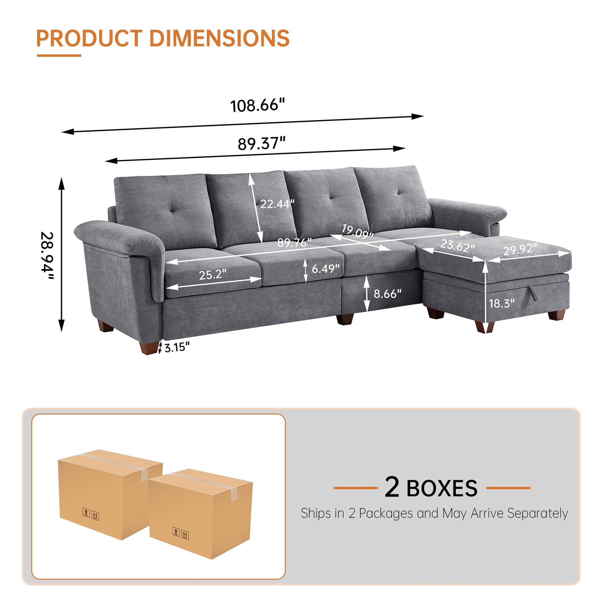 108" Convertible L-Shaped Sectional Sofa with Ottoman and Storage