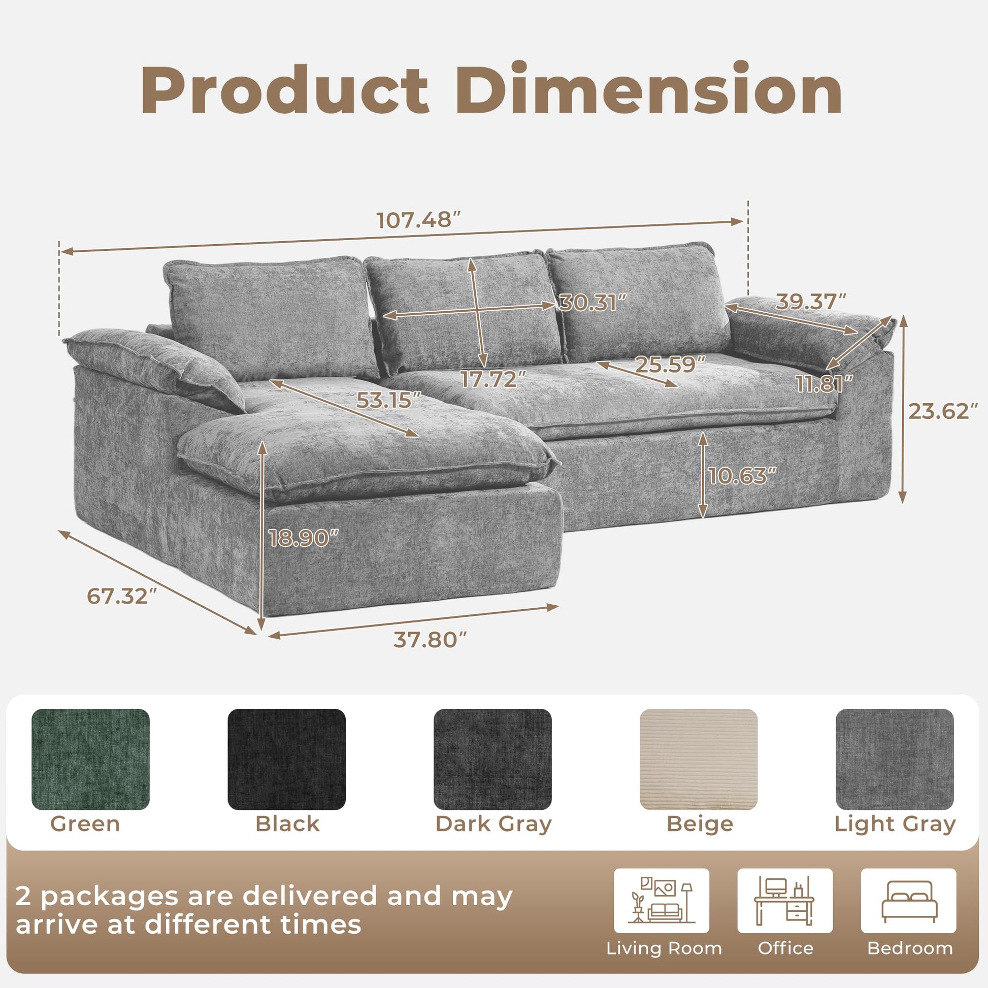- Modular Flexibility: Grey L-shaped design with free combination—reposition ottoman or seats to create your ideal layout