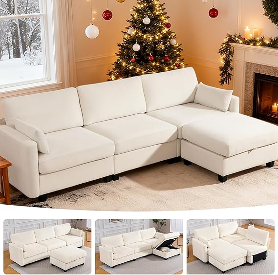 Transform your living room with this spacious 109-inch modular sectional sofa. Featuring a comfortable cloud-like design with deep seating, this L-shaped couch provides ample space for family and guests. The included storage ottoman offers practical functionality while maintaining a sleek, modern aesthetic.