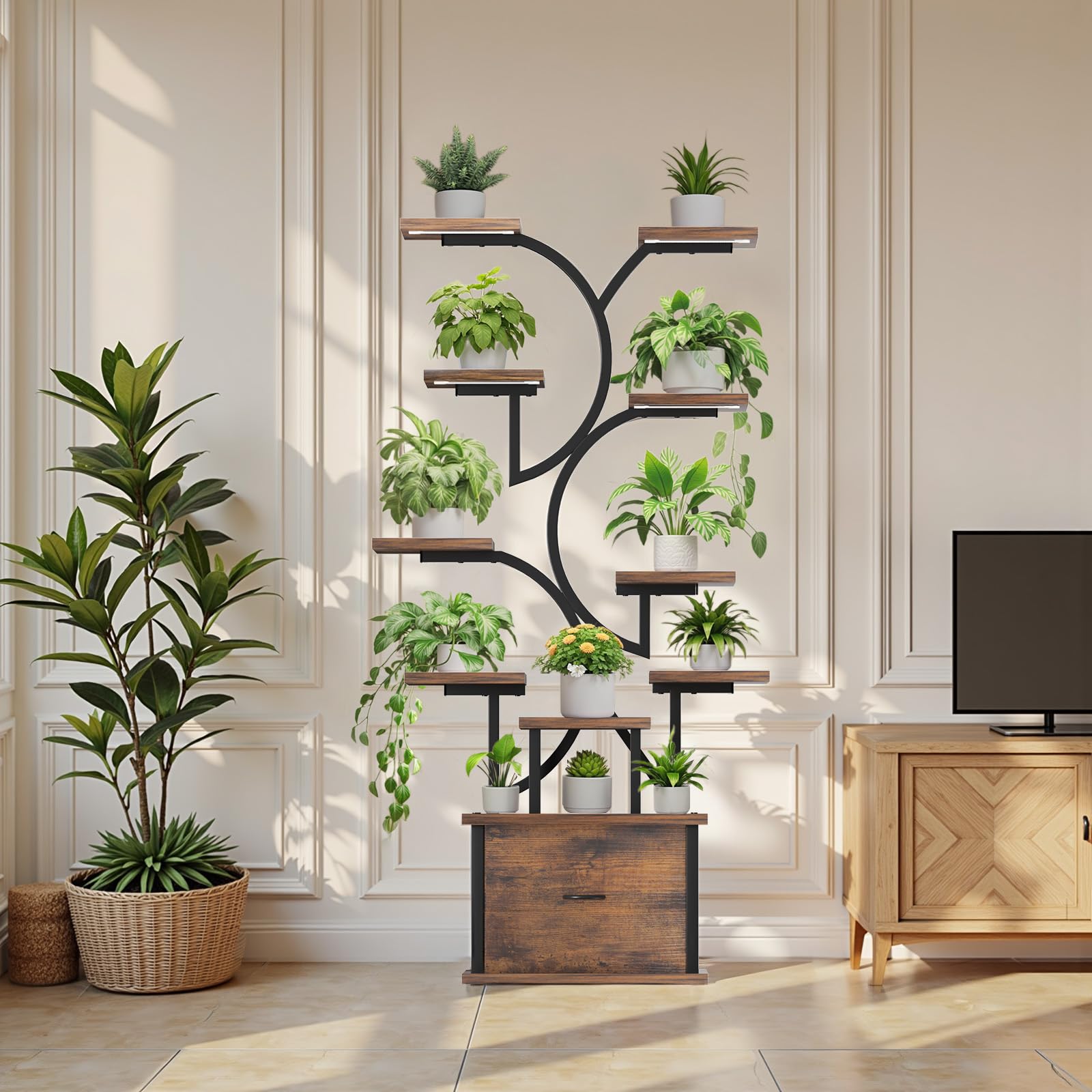 - Maximize Your Space: 11 staggered tiers display multiple plants efficiently. Bottom drawer stores gardening tools and doubles as a display shelf for books or decorative items.
