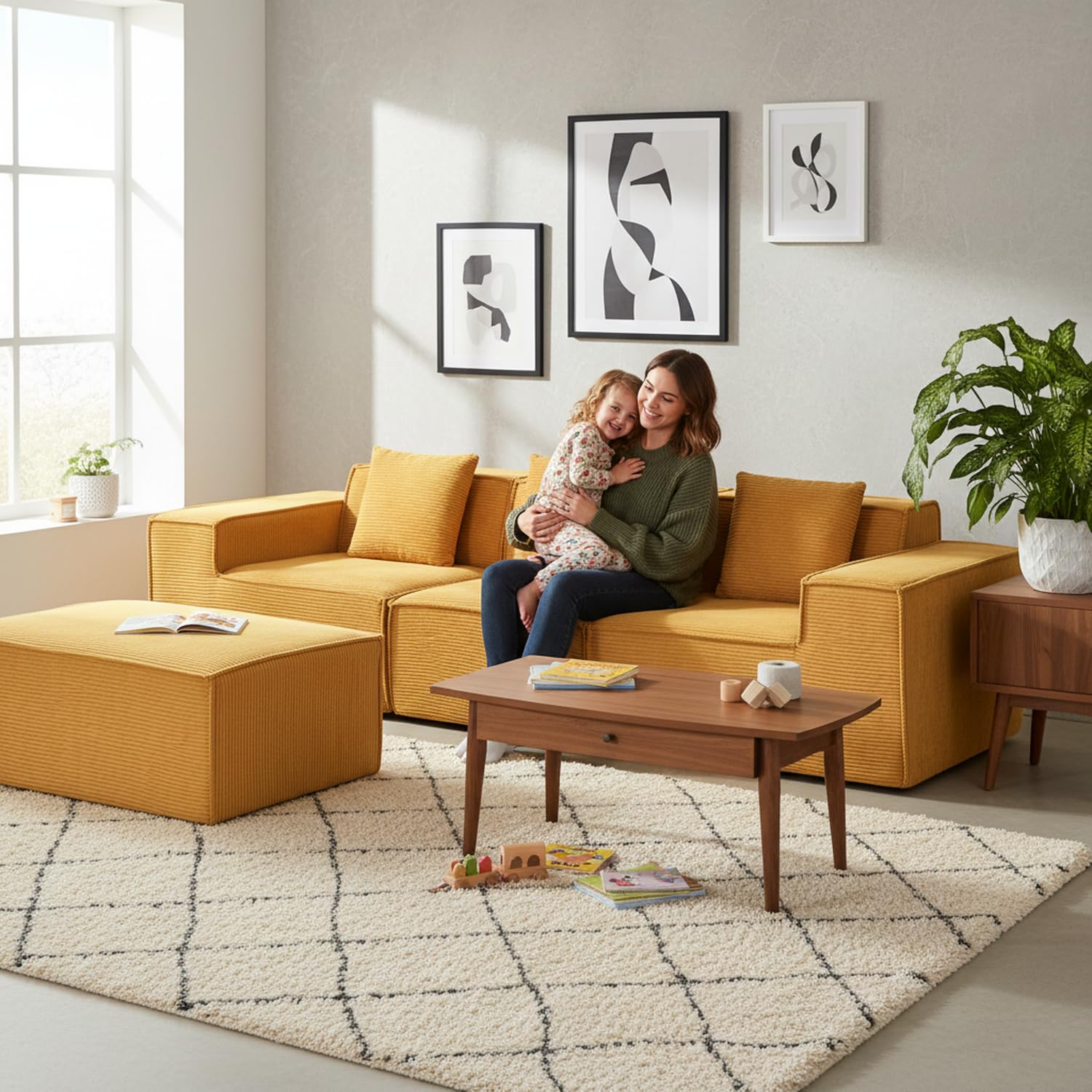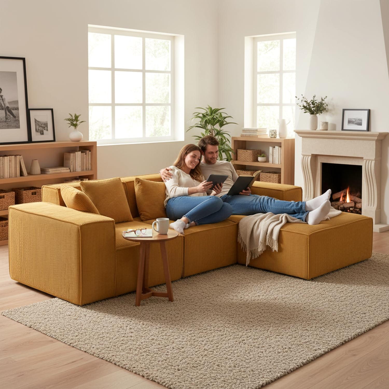 - Stylish Corduroy Fabric: Modern texture in Ginger Yellow adds warmth and contemporary appeal