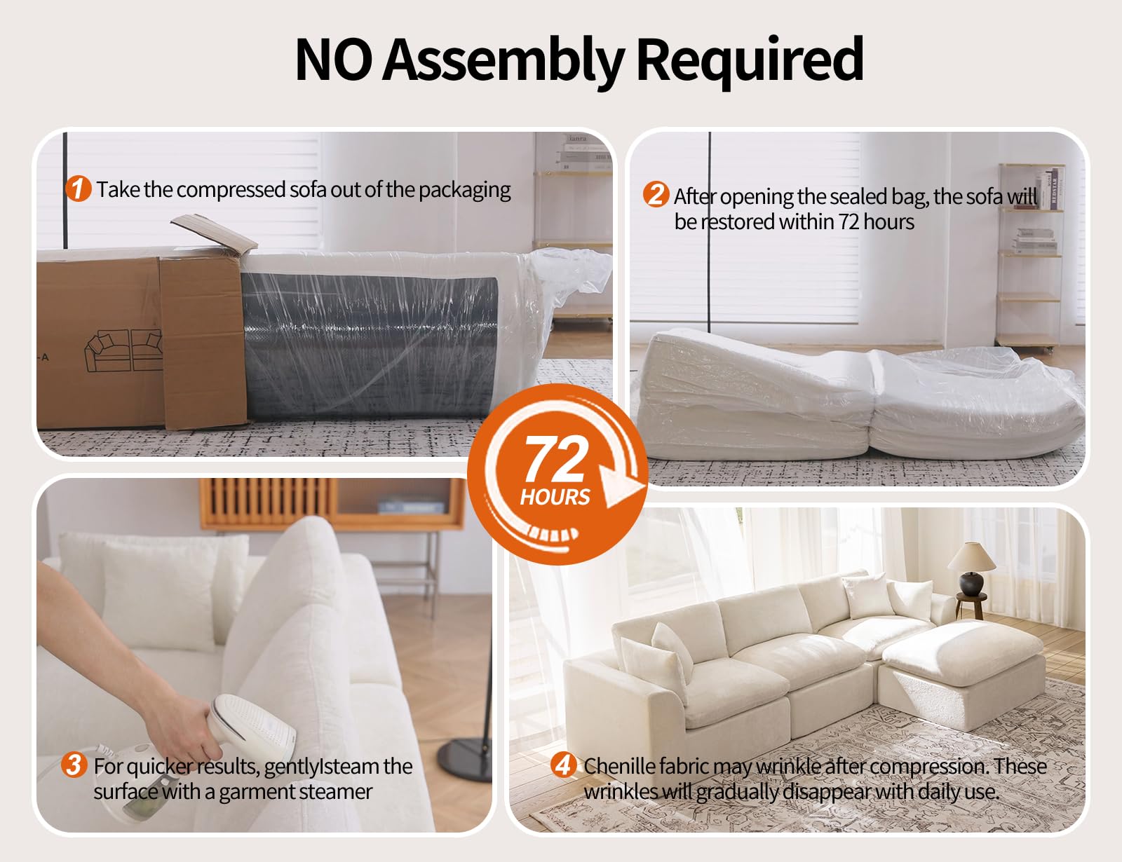 Experience ultimate comfort with this 115-inch modular sectional sofa featuring a luxurious cloud-like design. The L-shape configuration includes 3 spacious seaters and 1 ottoman, perfect for creating a relaxing living room environment. The boneless construction with deep seating provides exceptional comfort without the need for assembly.