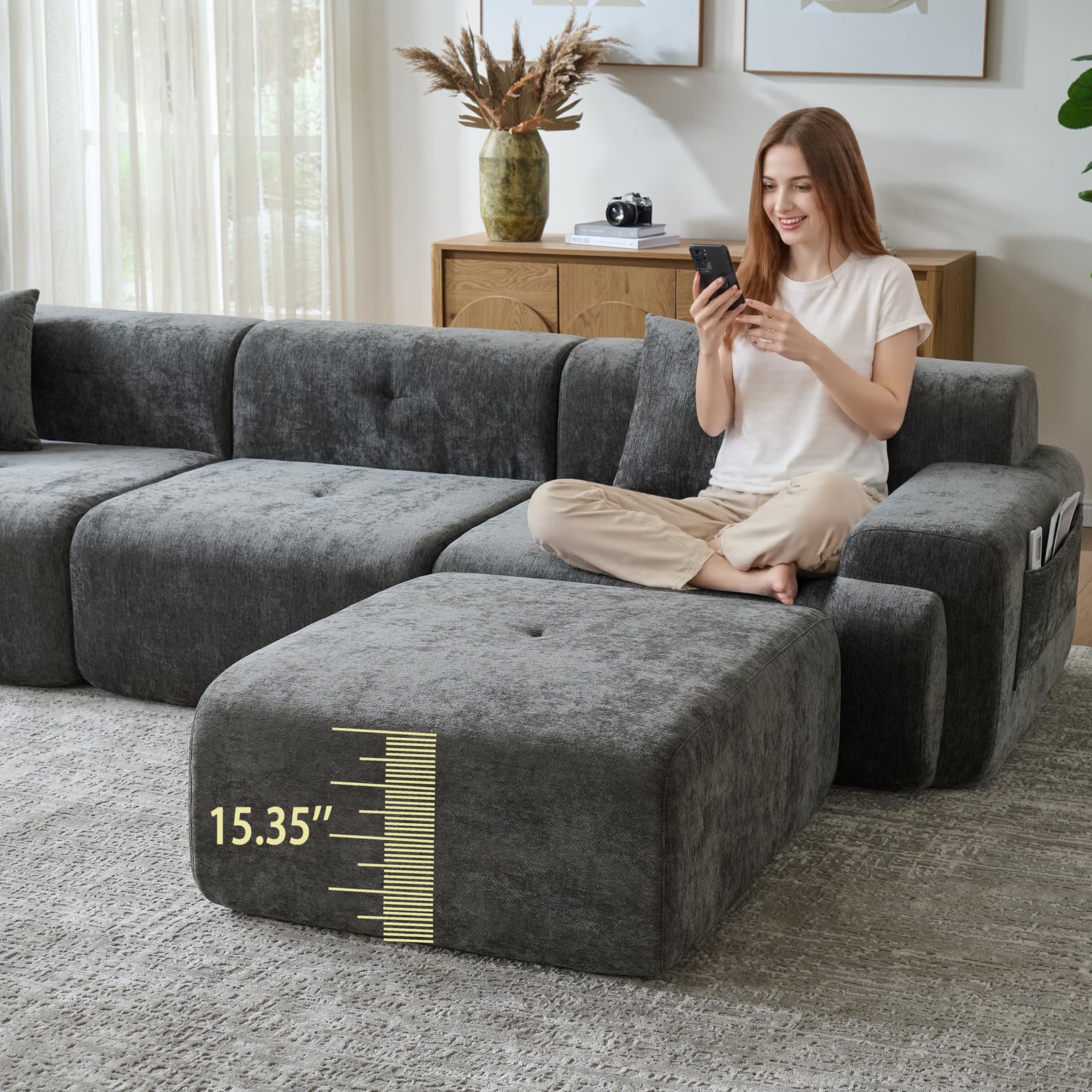 - Modular & Flexible Setup: Rearrange sections into different shapes with hidden straps for secure connections and a movable ottoman for added flexibility