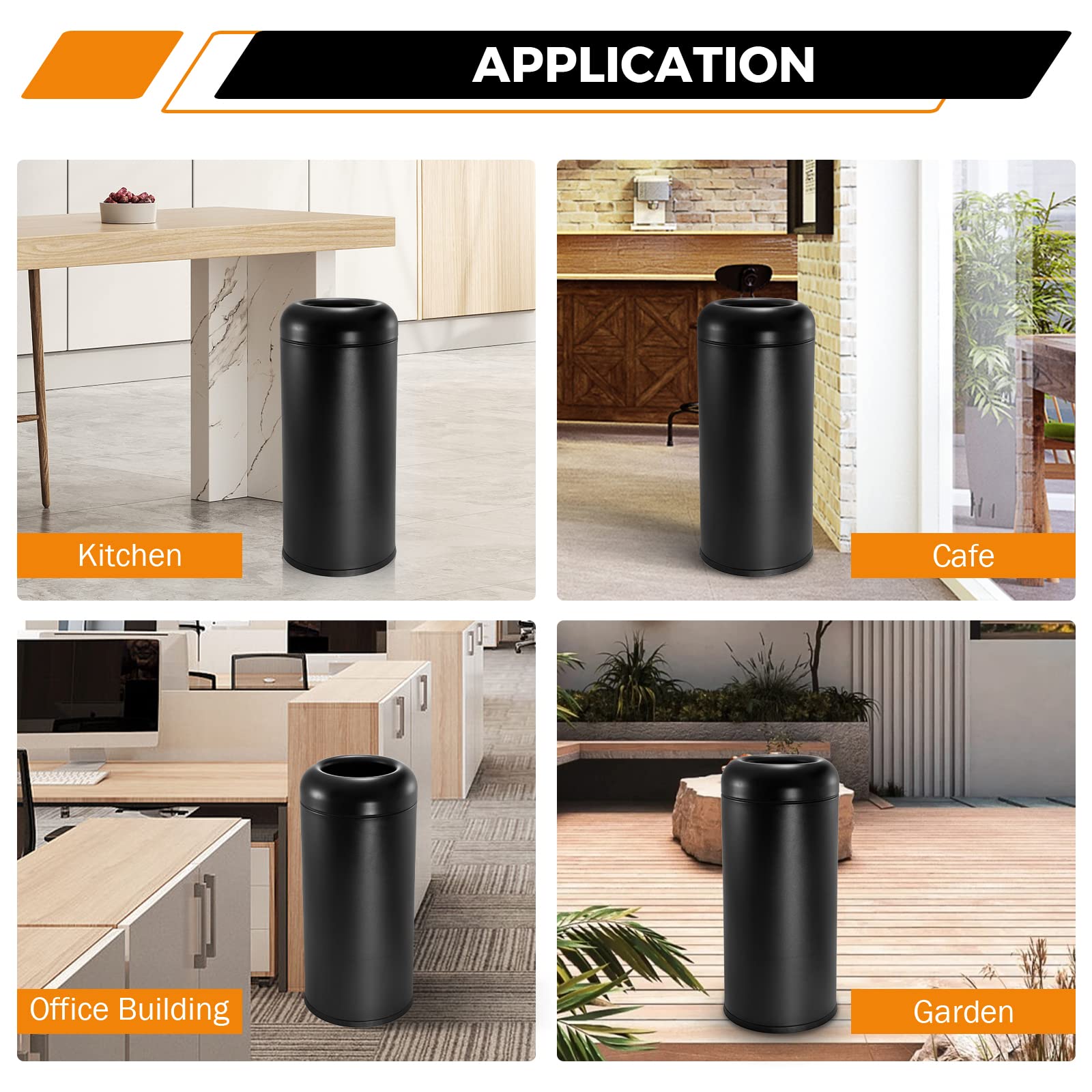Heavy-duty stainless steel trash can with all-metal construction featuring anti-corrosion and anti-rust capabilities. Resistant to fingerprints and smudges for a polished look that blends with any home, kitchen, or office environment.