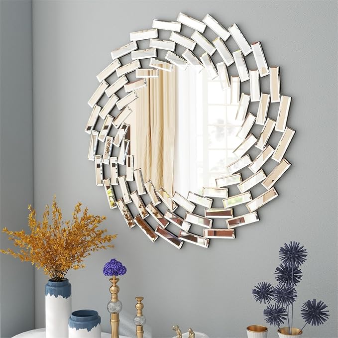This versatile wall mirror serves as both a functional piece and a stunning decorative accent. The silver finish complements a wide range of interior styles, from modern minimalist to classic elegance. The round shape softens angular spaces while the reflective surface enhances natural light and creates the illusion of more space.