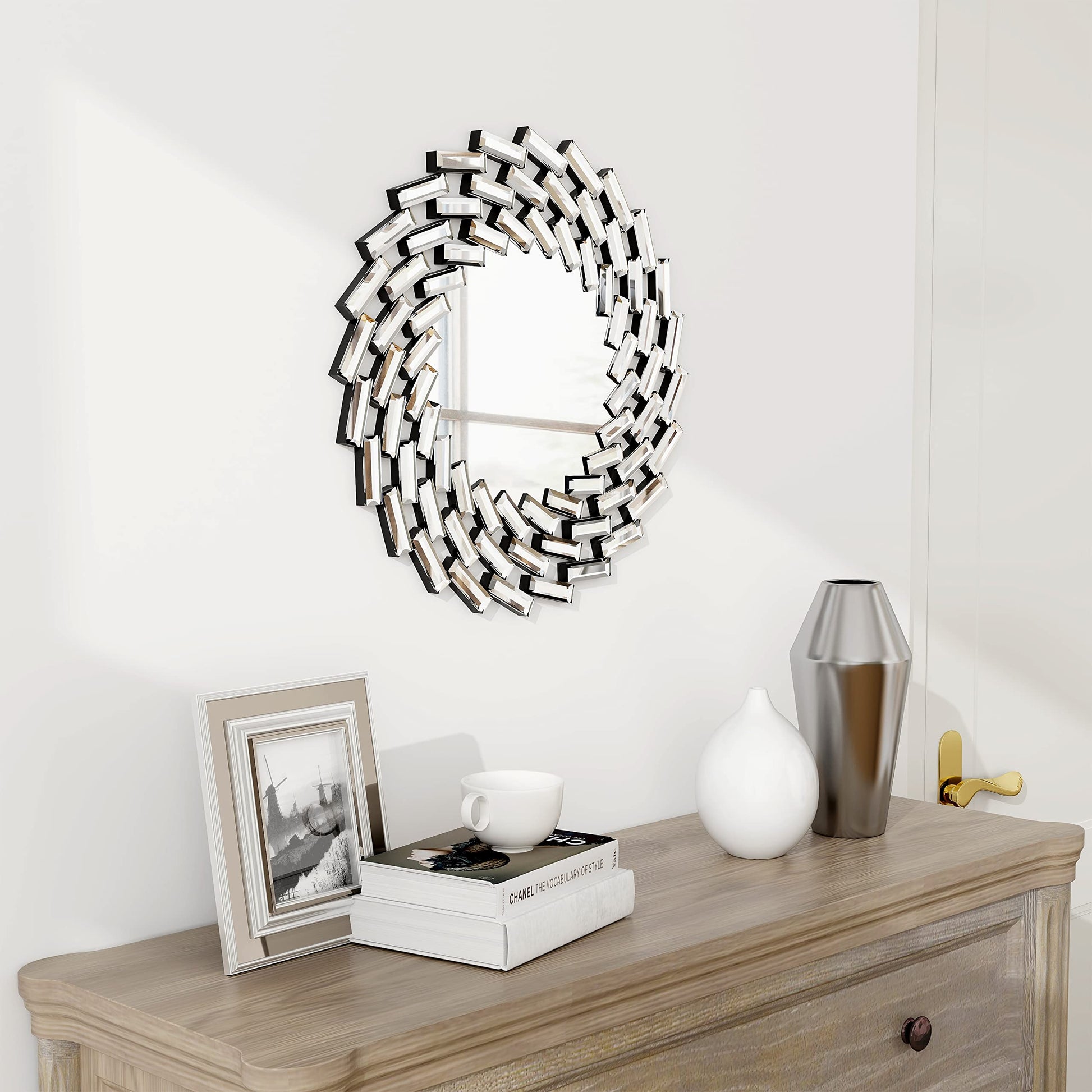 Elevate your interior design with this modern 18-inch round wall mirror featuring an elegant silver finish. Perfect for creating visual depth and reflecting light in any room, this decorative mirror combines contemporary style with functional design.