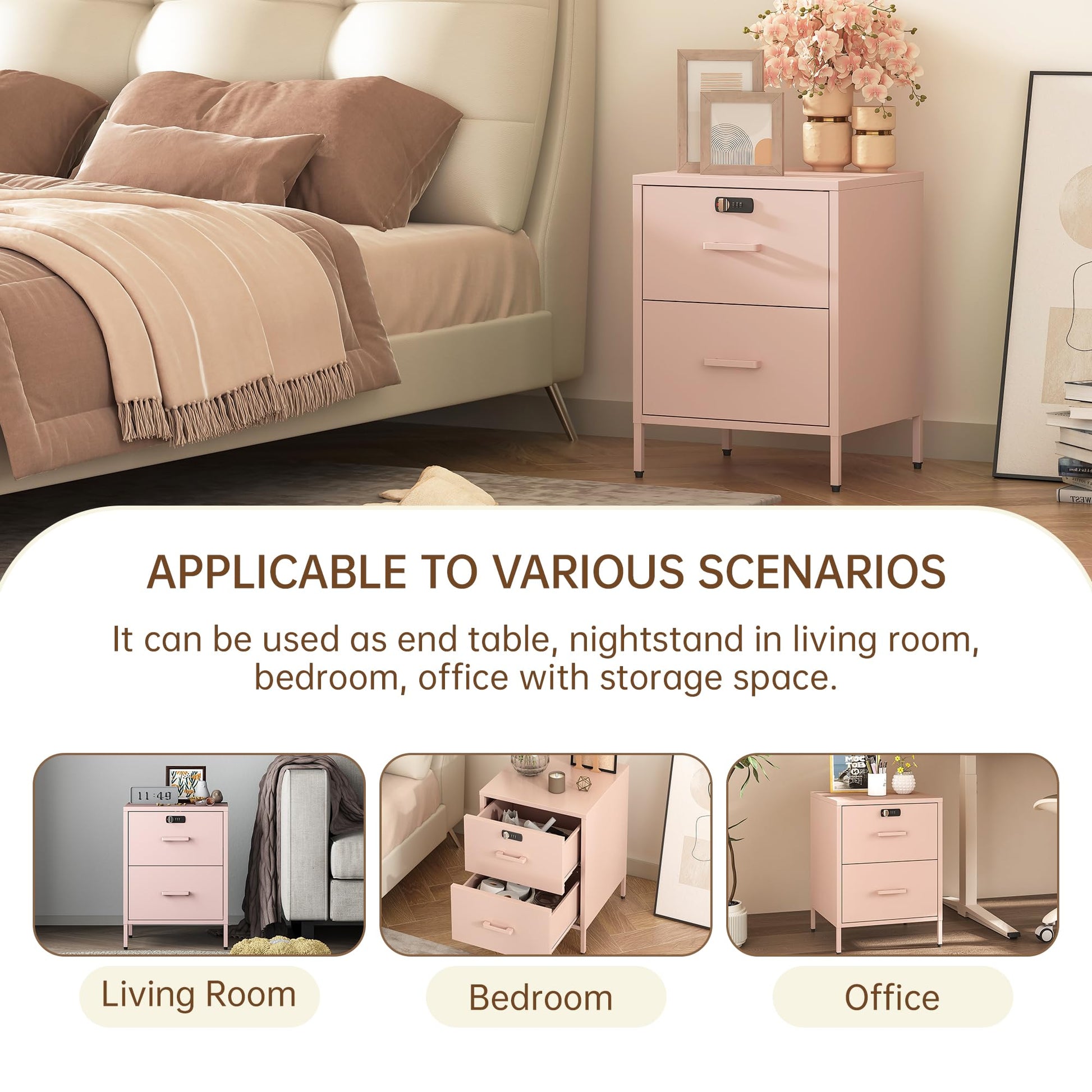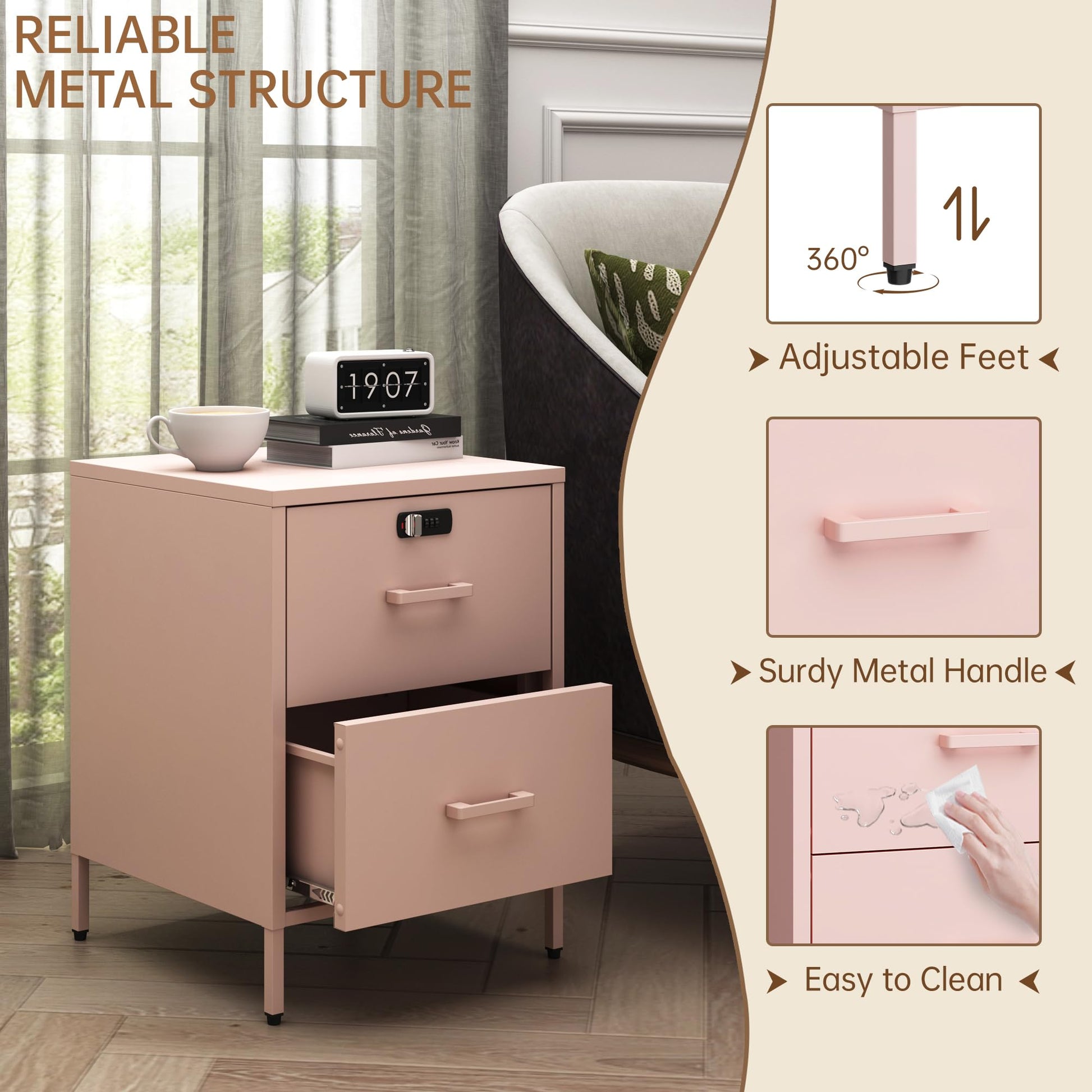 This lockable metal nightstand combines security and style, perfect for bedrooms, living rooms, or dorm spaces. Featuring two spacious drawers with lock functionality, this end table provides secure storage for valuables while maintaining a sleek, modern aesthetic.