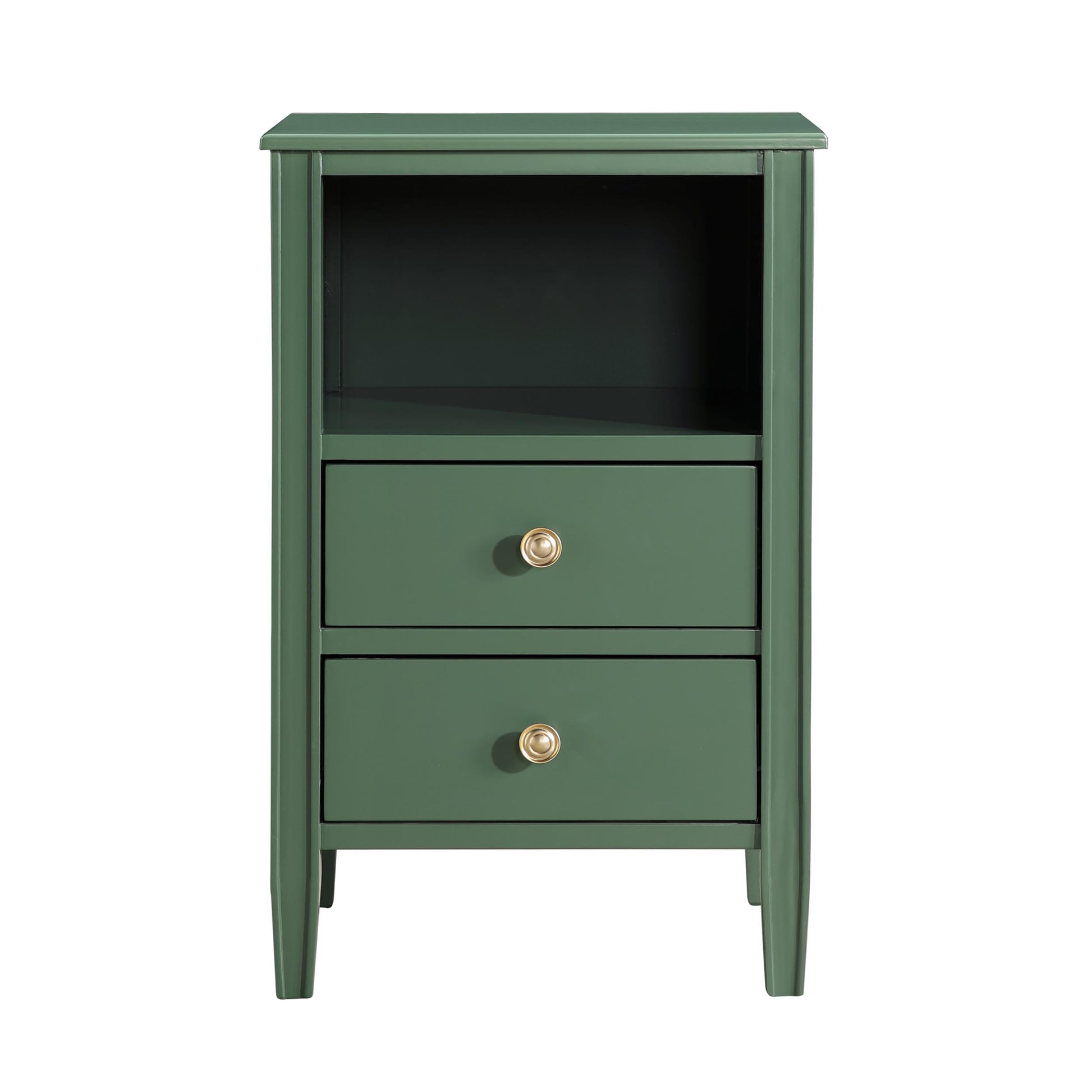 2-Drawer Vintage Green Painted Wood Storage Nightstand