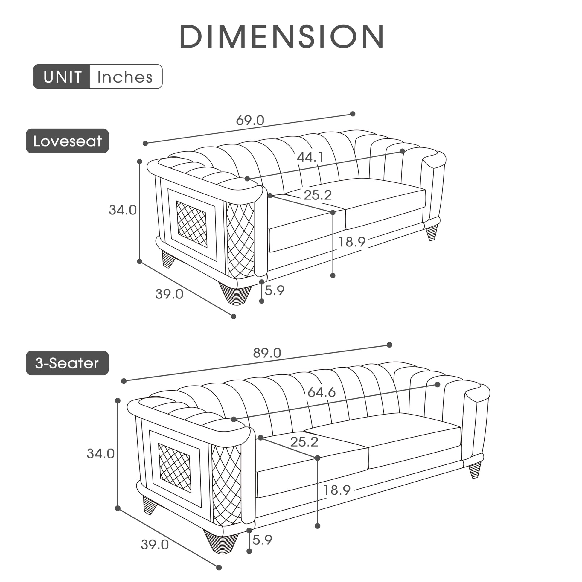 - Versatile set: 89-inch 3-seater sofa and 69-inch loveseat
