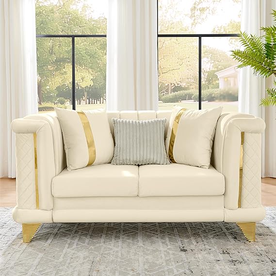 This stunning 2-piece velvet sofa set brings elegance and luxury into your living room. The gold stainless steel trims create intricate decorative patterns, while the embroidered textures elevate the overall aesthetic, making this sofa set a true work of art. Perfectly blending modern luxury with vintage charm, this set adds a touch of sophistication to any space.