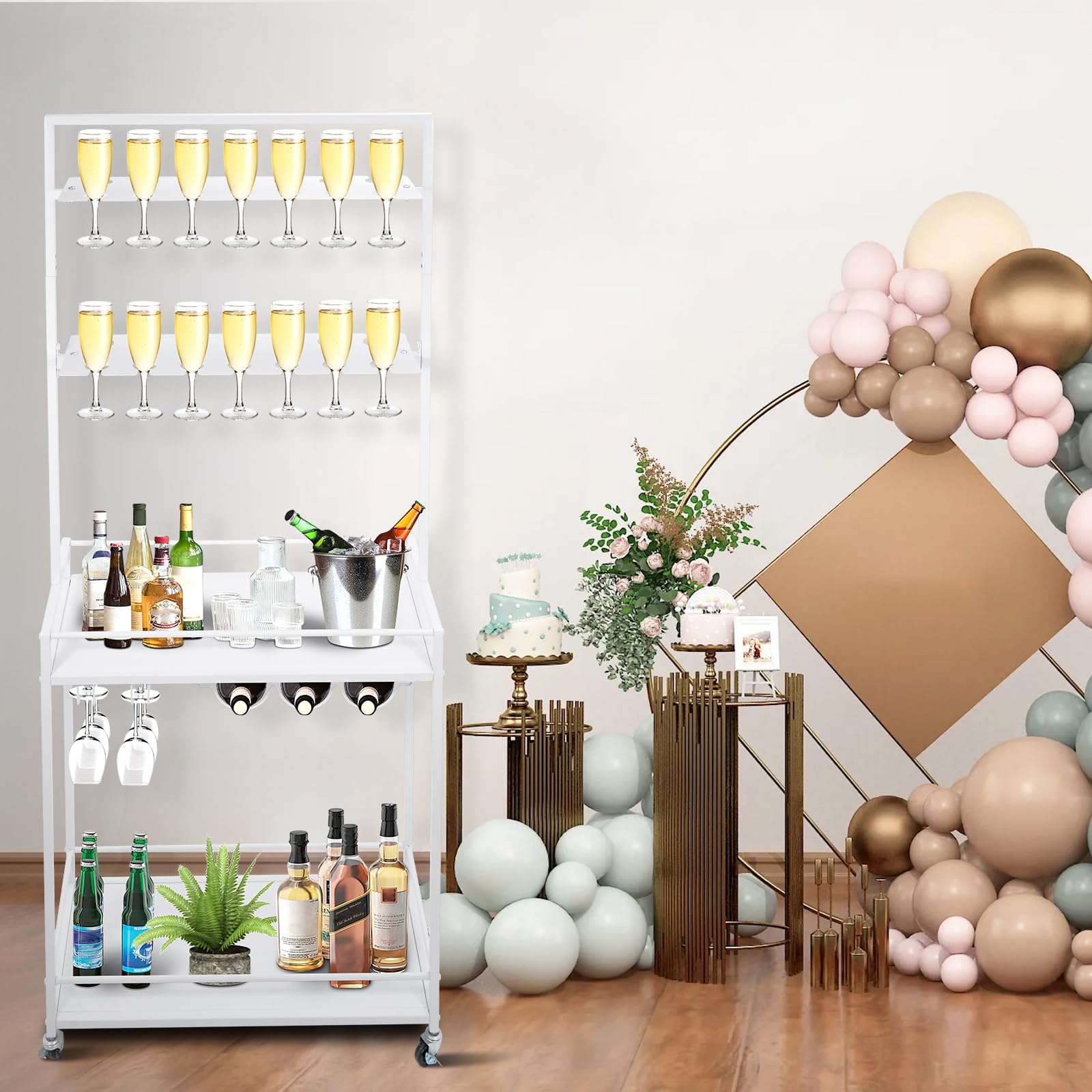 - Multifunctional & Detachable: Versatile design functions as a champagne wall, storage rack, kitchen service cart, coffee cart, beverage cart, or side table. Perfect for kitchens, living rooms, restaurants, or offices.