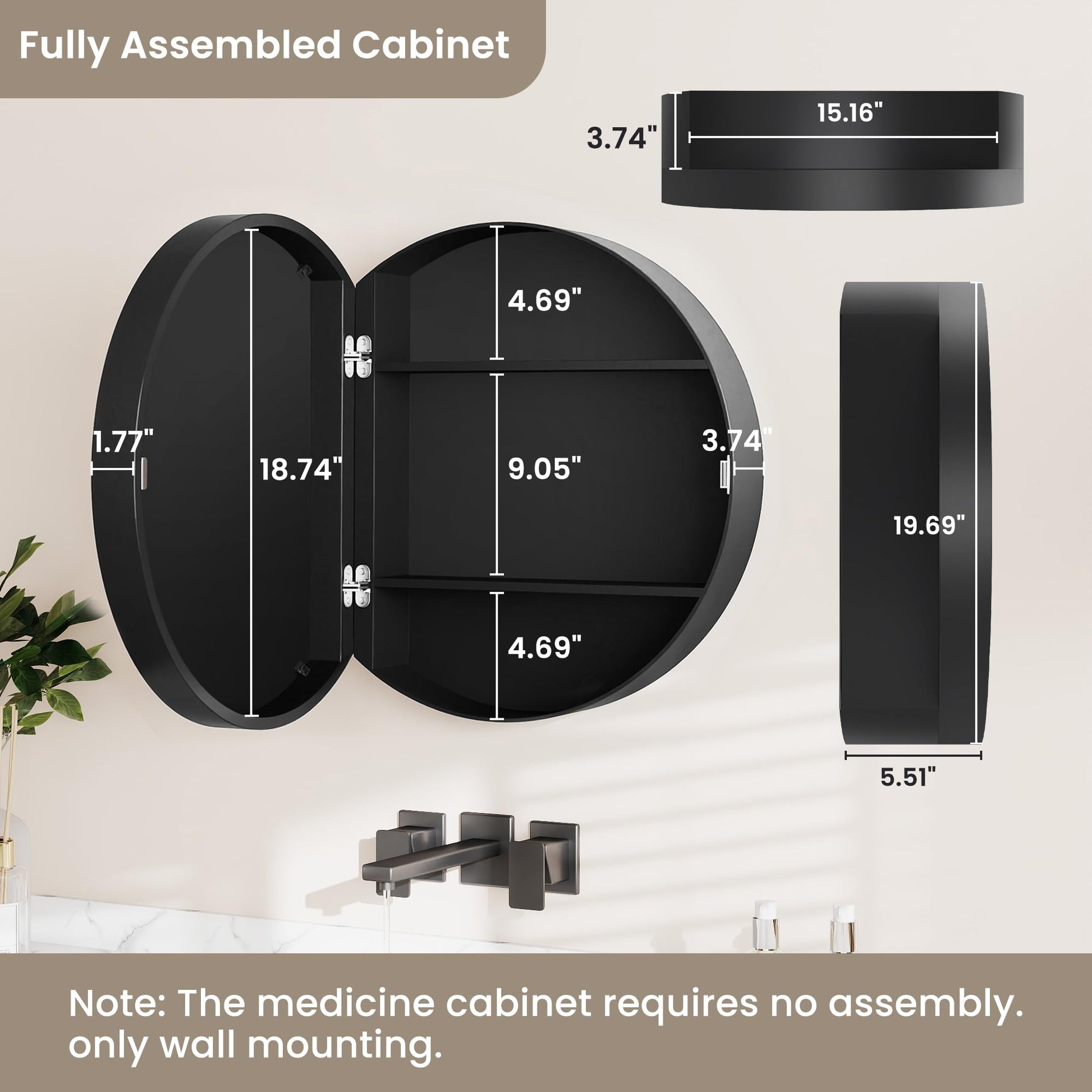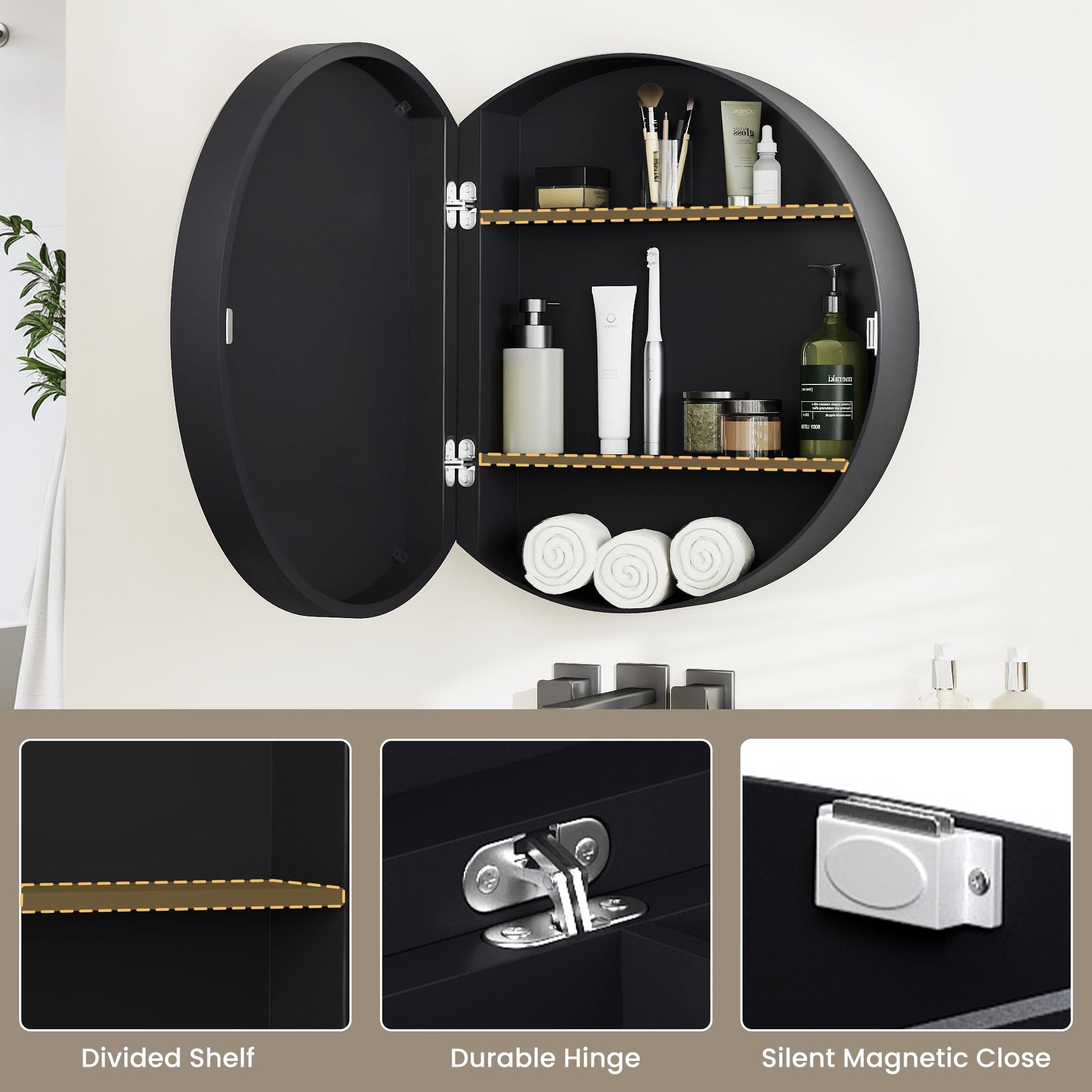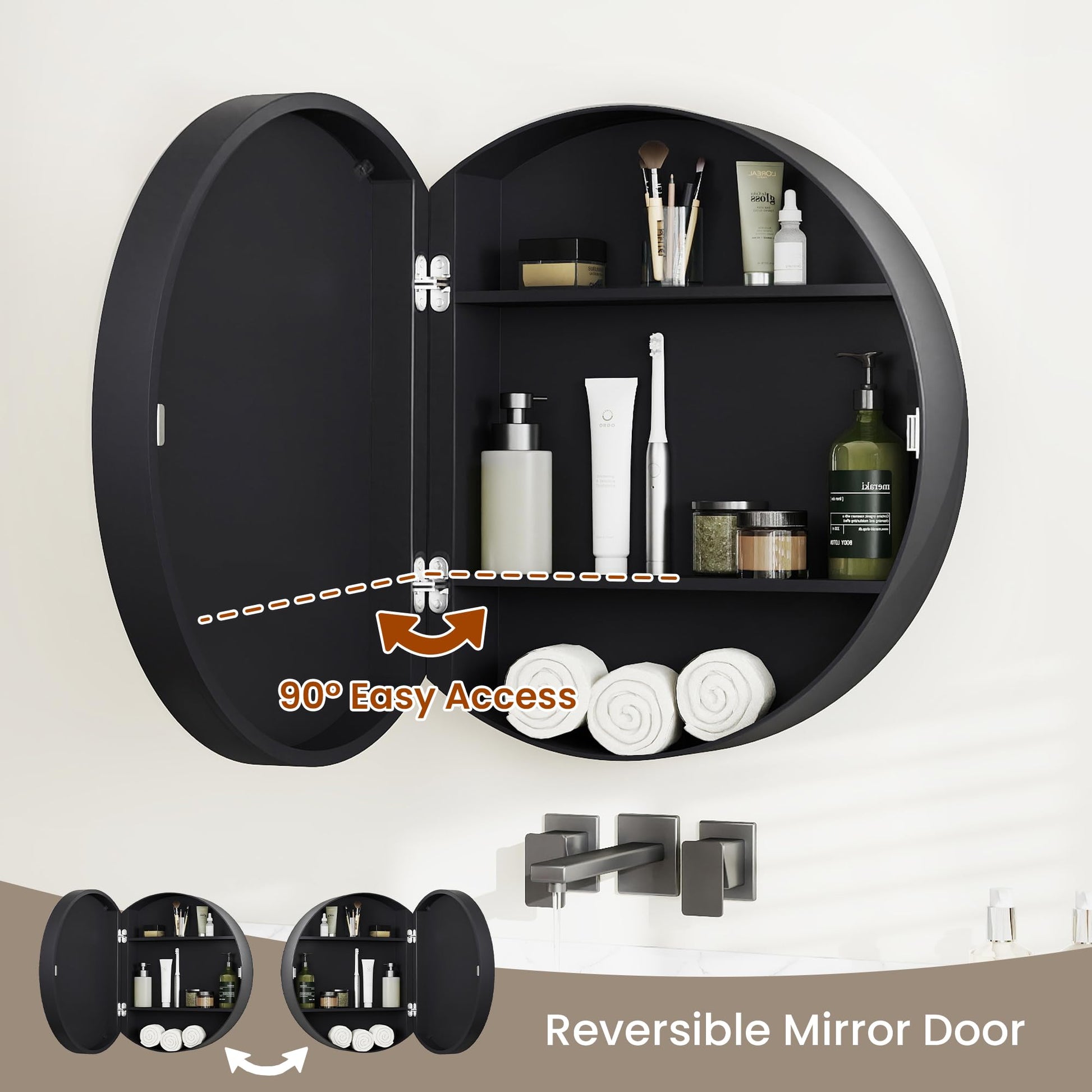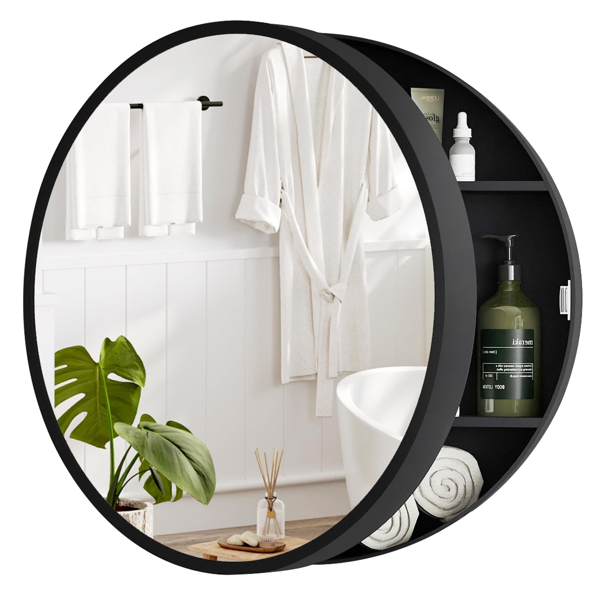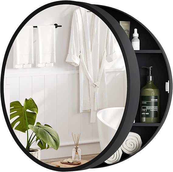 Elevate your bathroom aesthetic with this modern round medicine cabinet featuring timeless farmhouse charm. Crafted from waterproof wood and reinforced metal hinges, its circular silhouette resists moisture, warping, and daily wear.