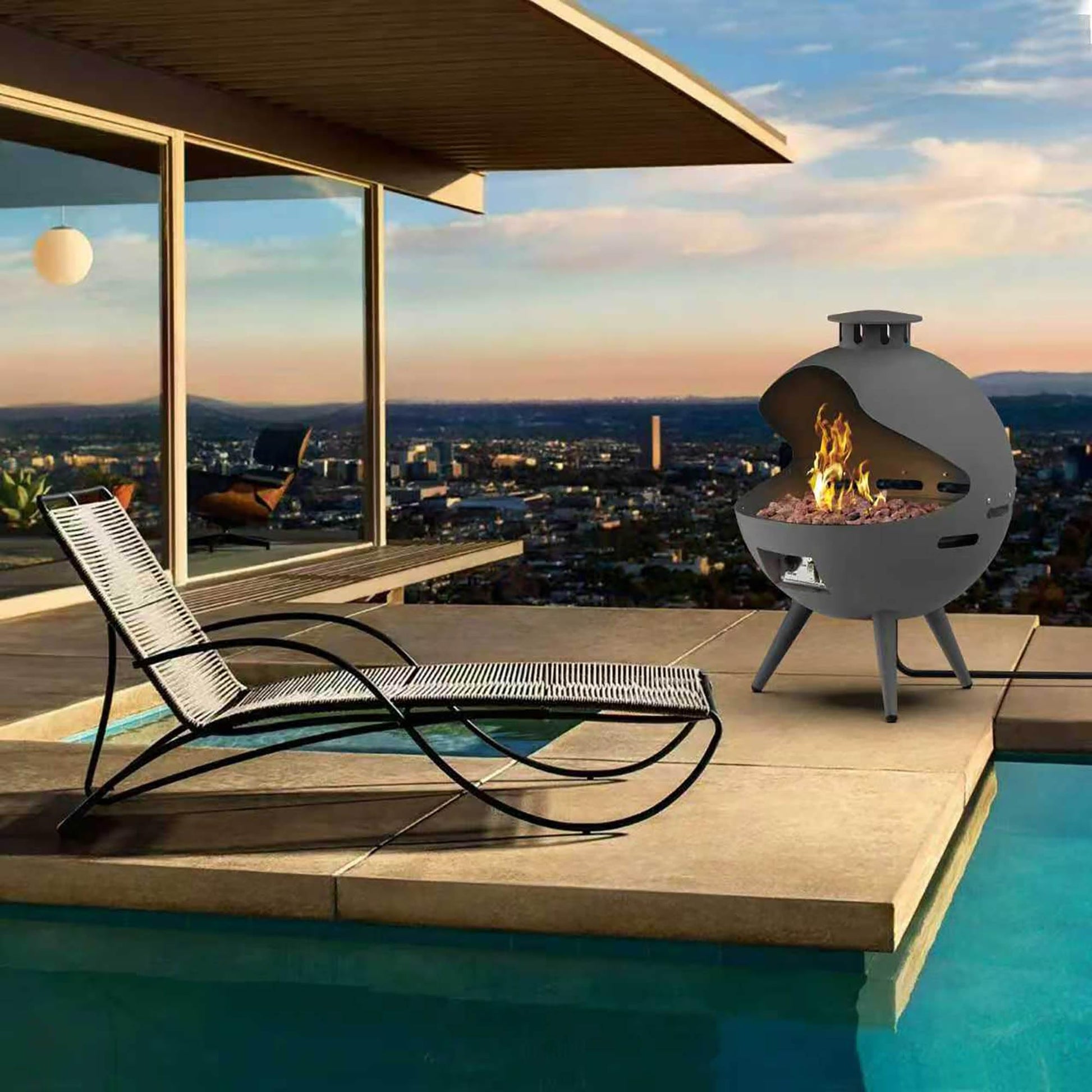 Transform your outdoor space with this versatile hemispherical fire pit featuring a unique 3-legged design. This propane-powered fire pit delivers an impressive 55,000 BTU heat output, perfect for creating a warm and inviting atmosphere in your backyard, patio, or garden.