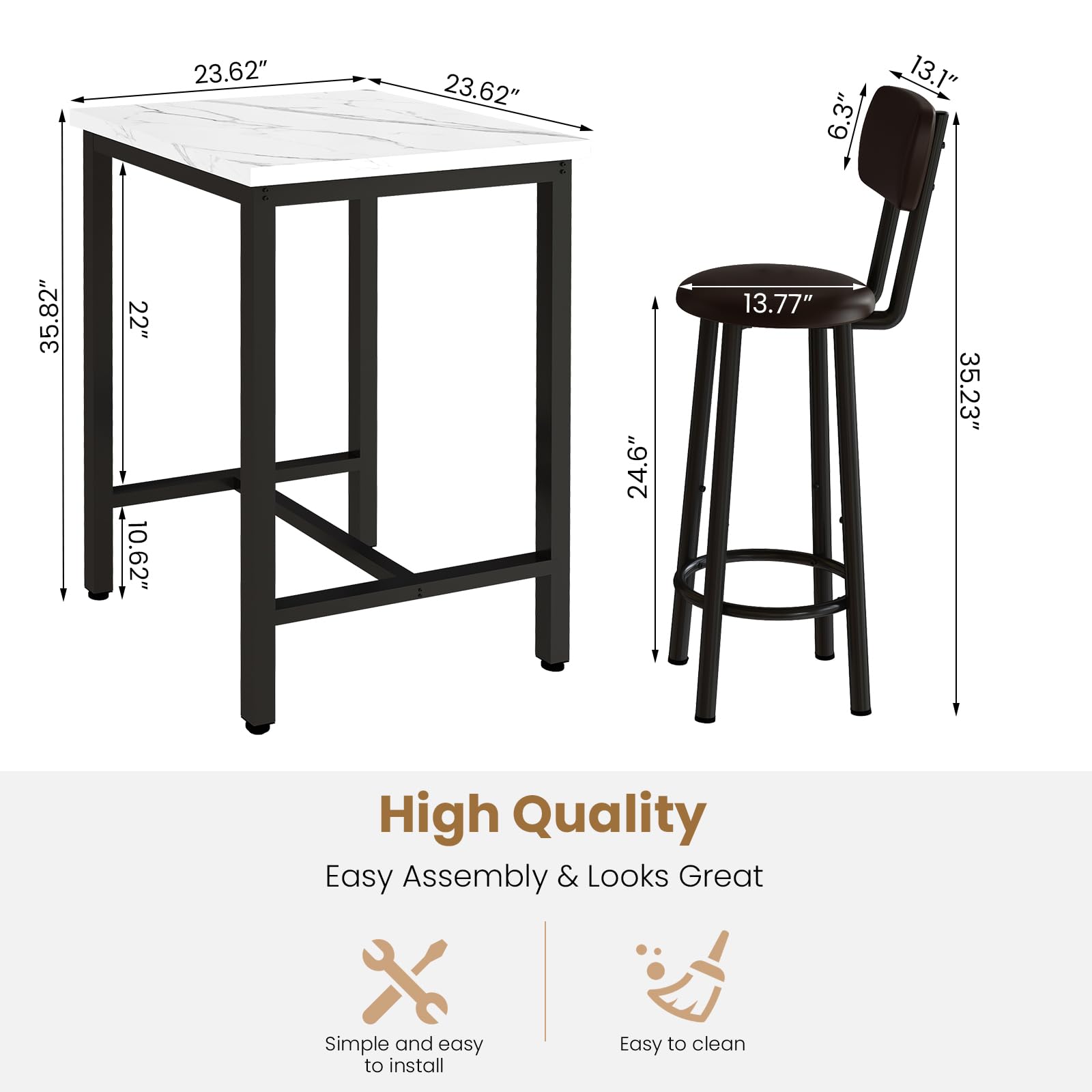 24" Square Dining Table Set for 2 with MDF Tabletop & PU Leather Chairs