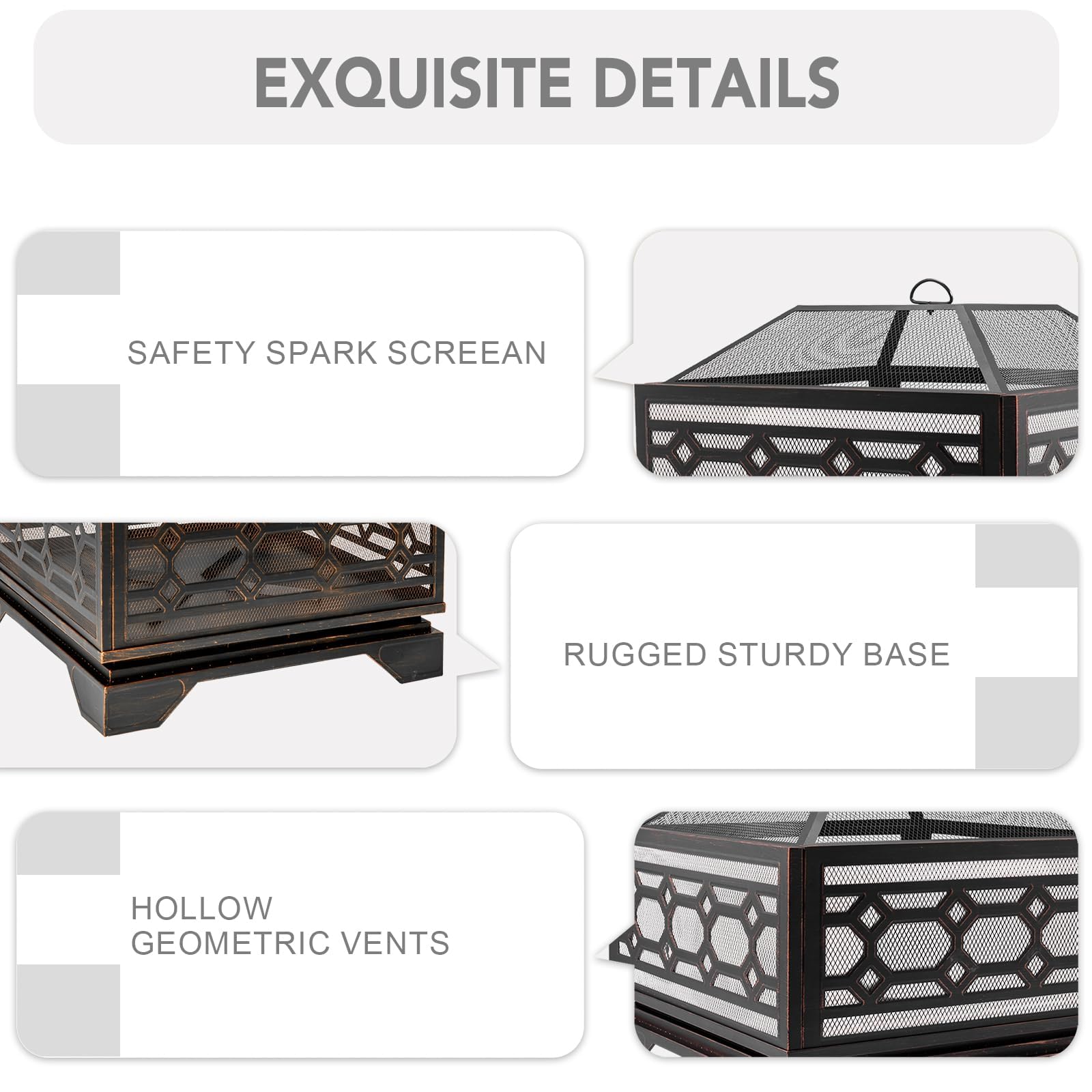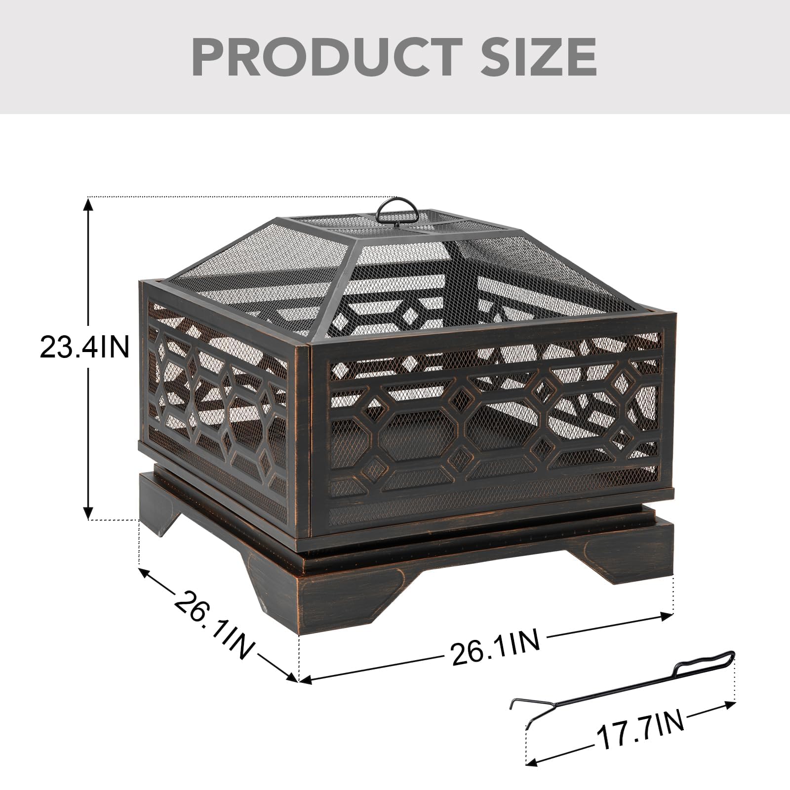 26 Inch Square Wood Burning Fire Pit with Mesh Cover