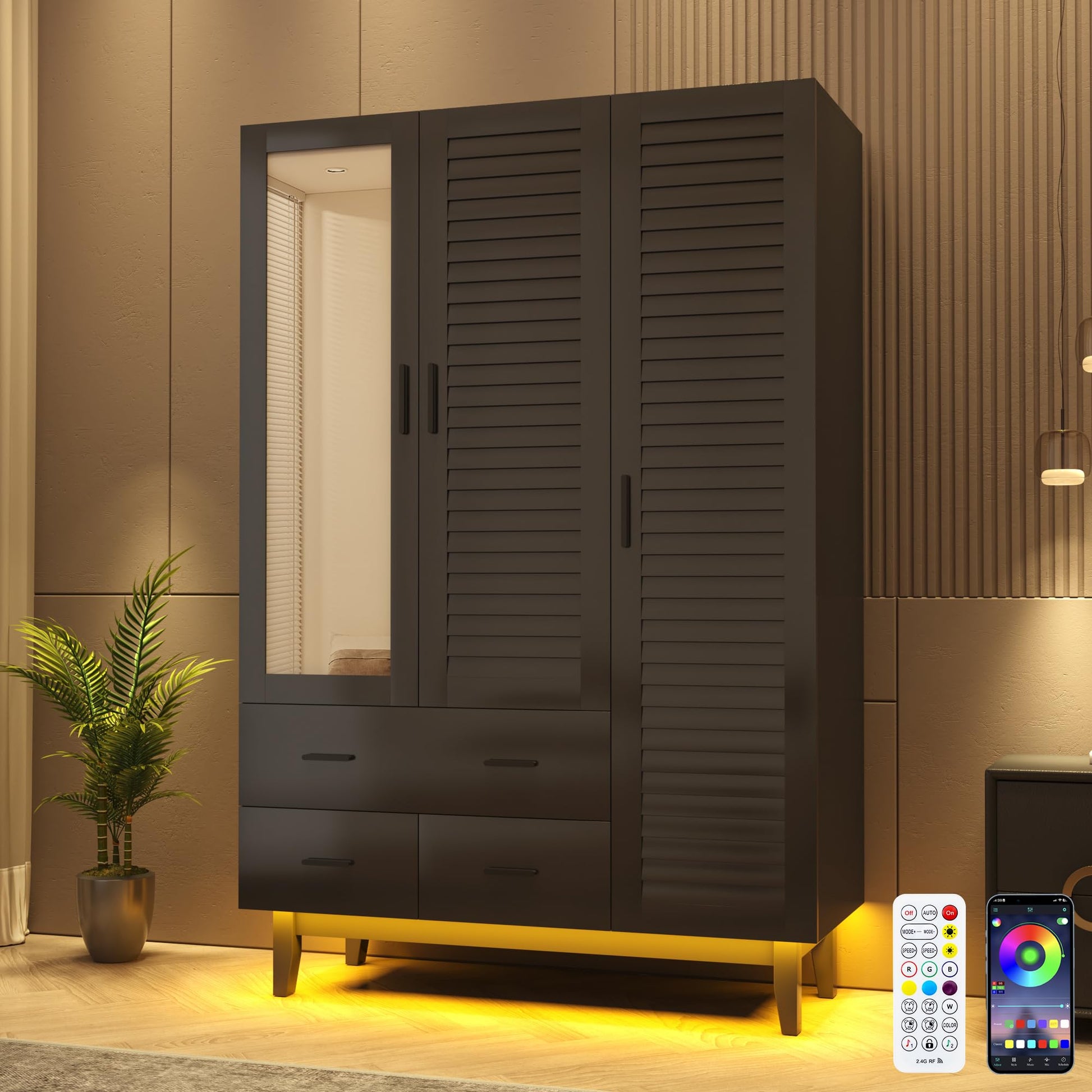 3 Door Armoire Wardrobe with LED Lights and Drawers