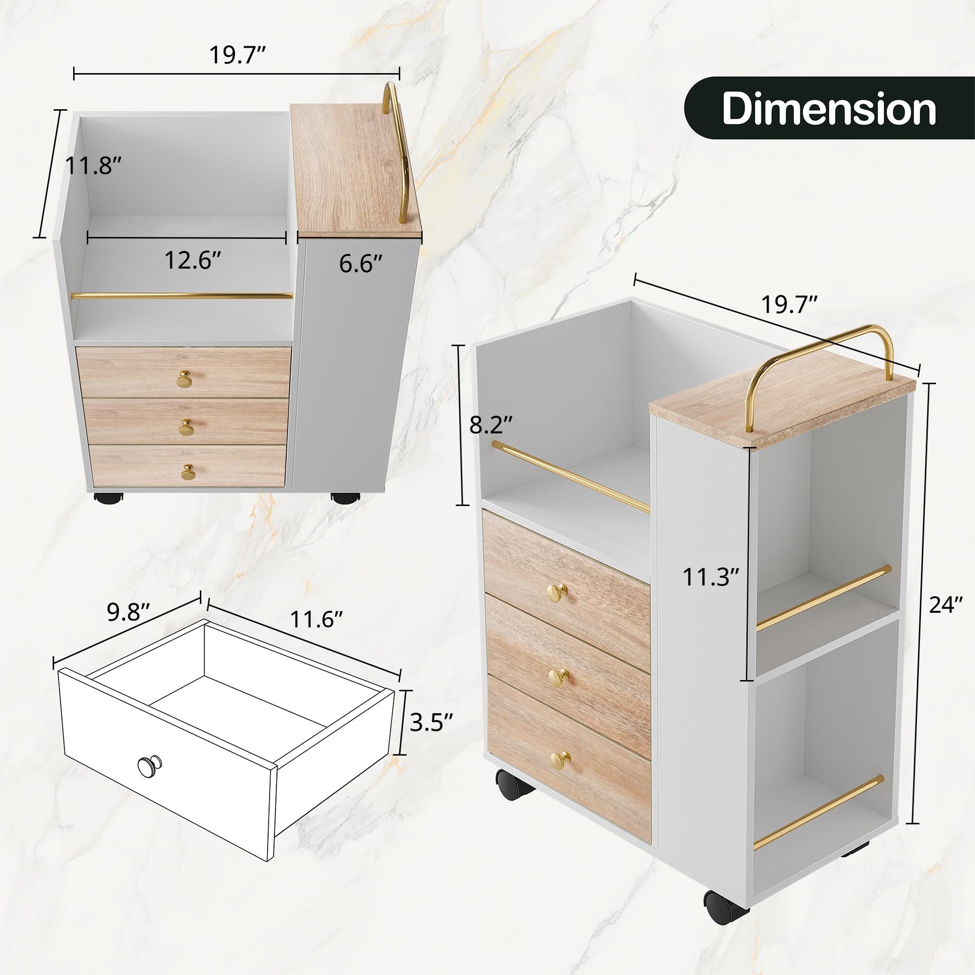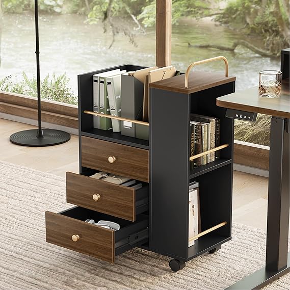 This rolling file cabinet combines functionality with style, offering versatile storage for your home office. Featuring three spacious drawers that accommodate A4 and legal-size documents, plus open storage shelves for easy access to frequently used items.