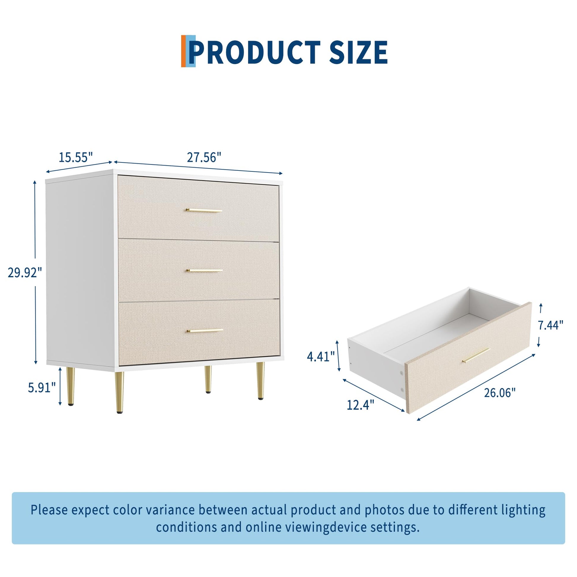 3-Drawer White Dresser with Gold Handles