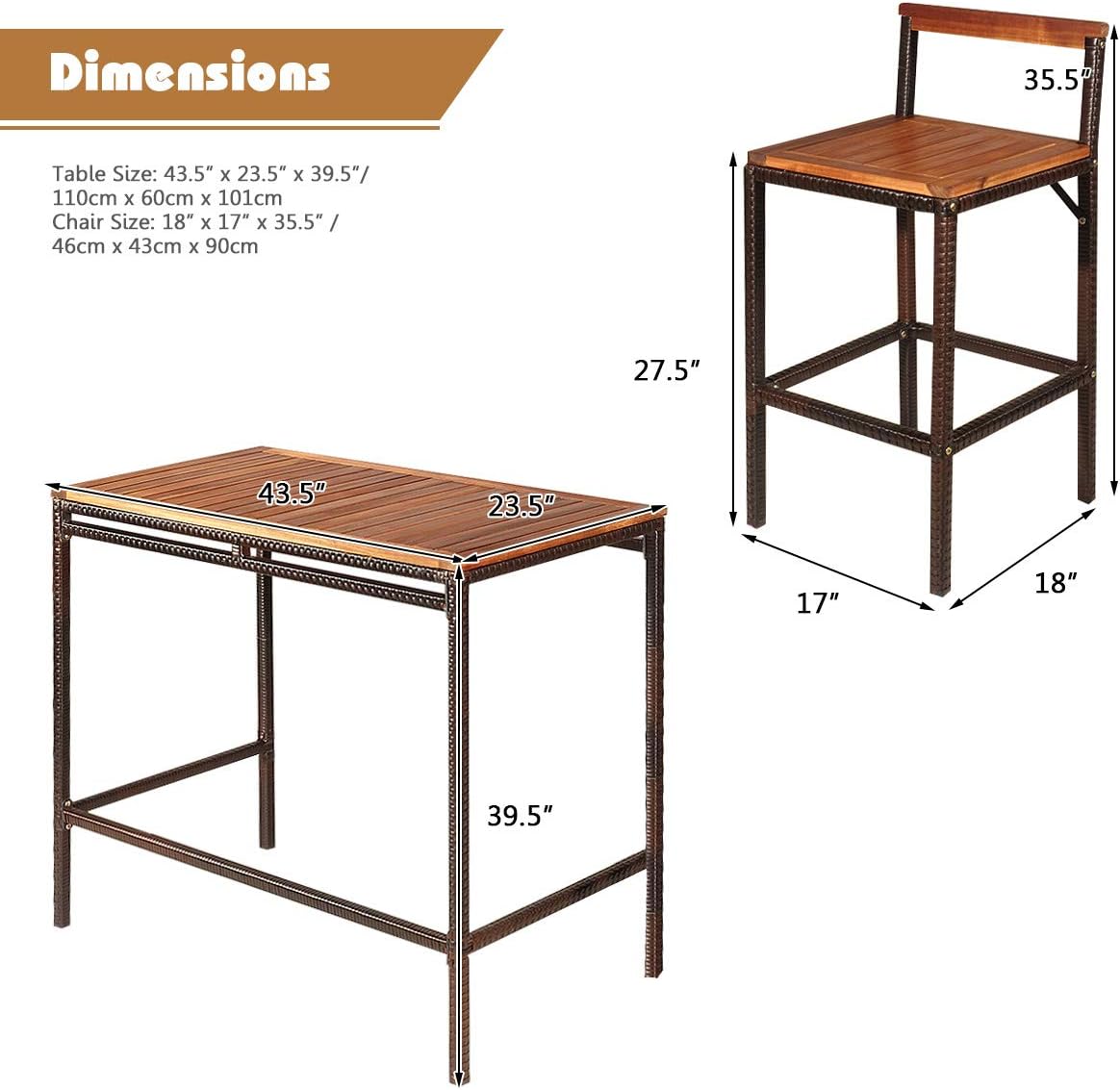 - Excellent Stability and Durability: Constructed with solid acacia wood and a steel frame covered with weather-resistant PE rattan for long-lasting outdoor use