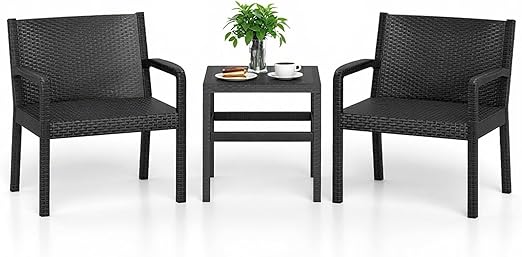 3-Piece Patio Bar Set with 2 Chairs and Square Table