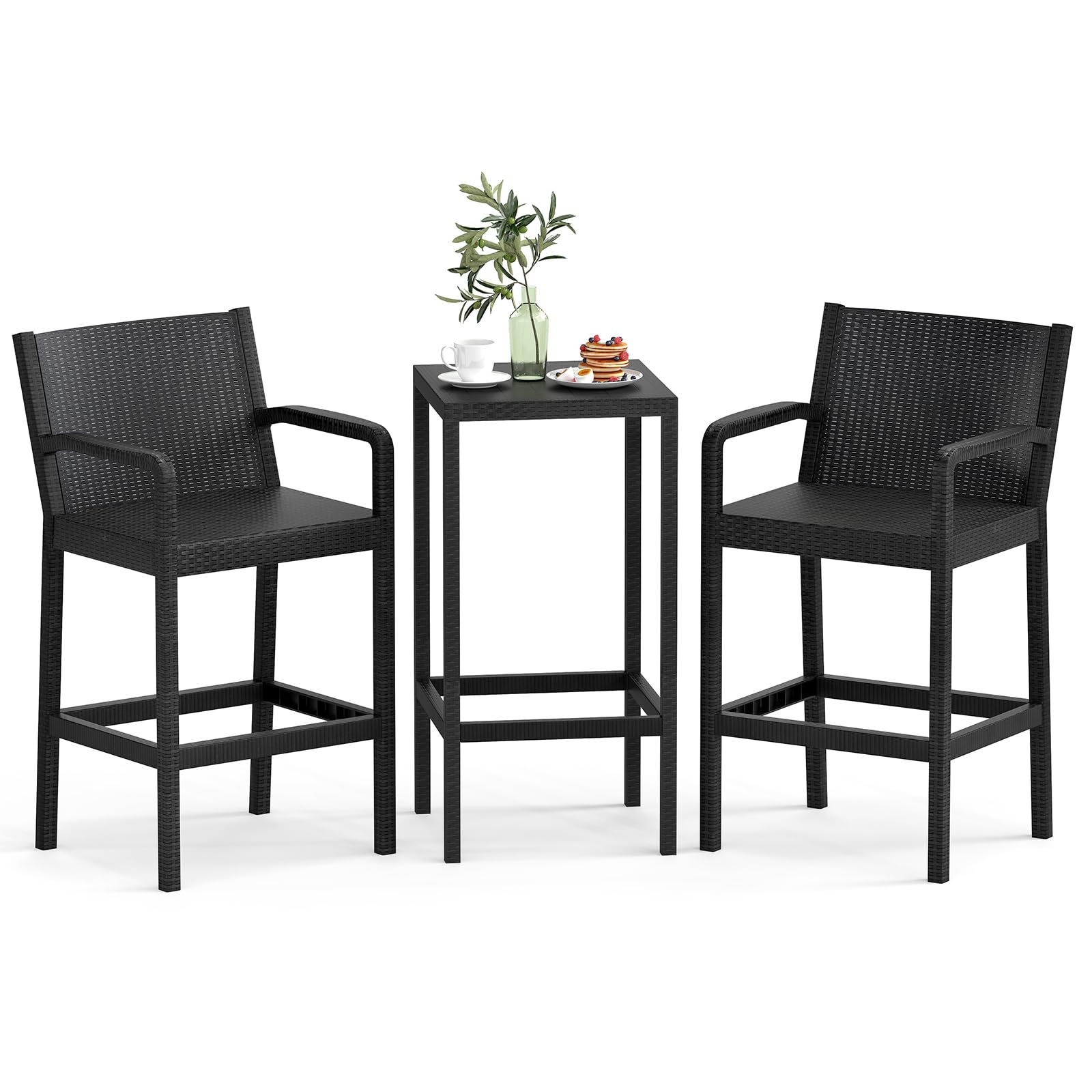 Elevate your outdoor entertaining with this sleek 3-piece bar set, featuring two comfortable bar stools and a stylish square bar table. Perfect for gardens, balconies, and poolside areas.