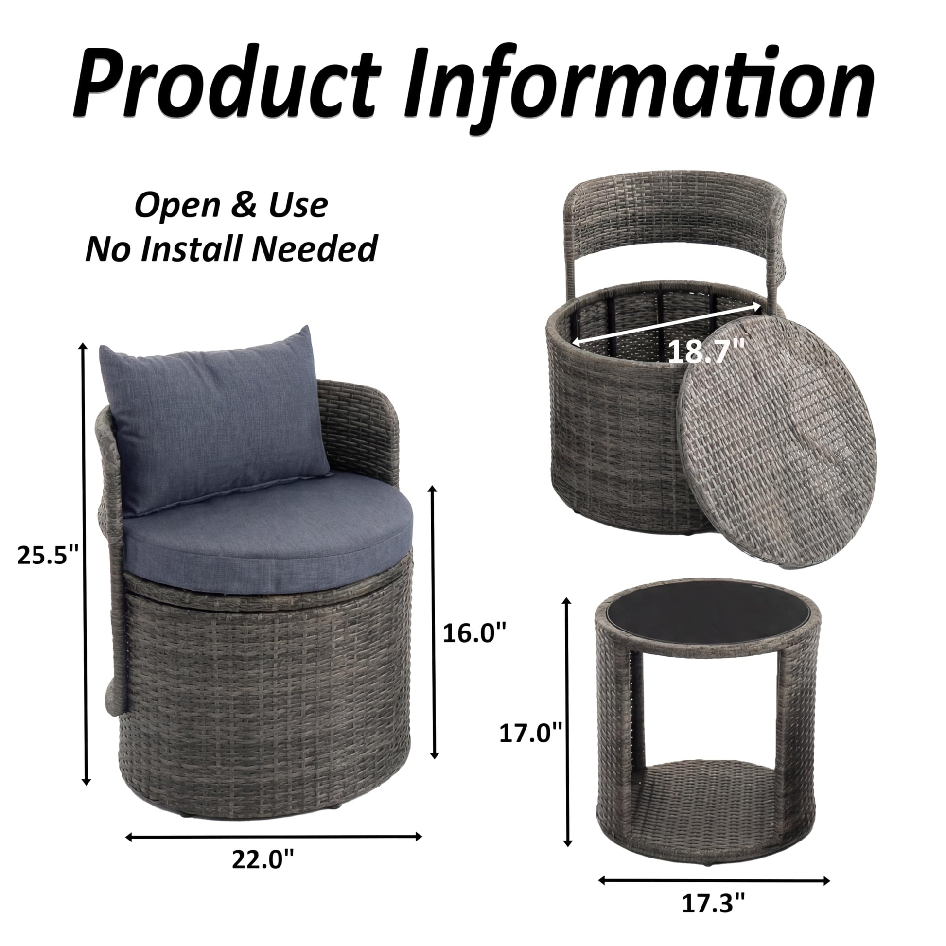 - 3-Piece Wicker Patio Furniture: Includes 2 wicker storage chairs and 1 round patio side table, perfect for balcony furniture, patio furniture set, garden seating, porch, deck, terrace, or poolside furniture