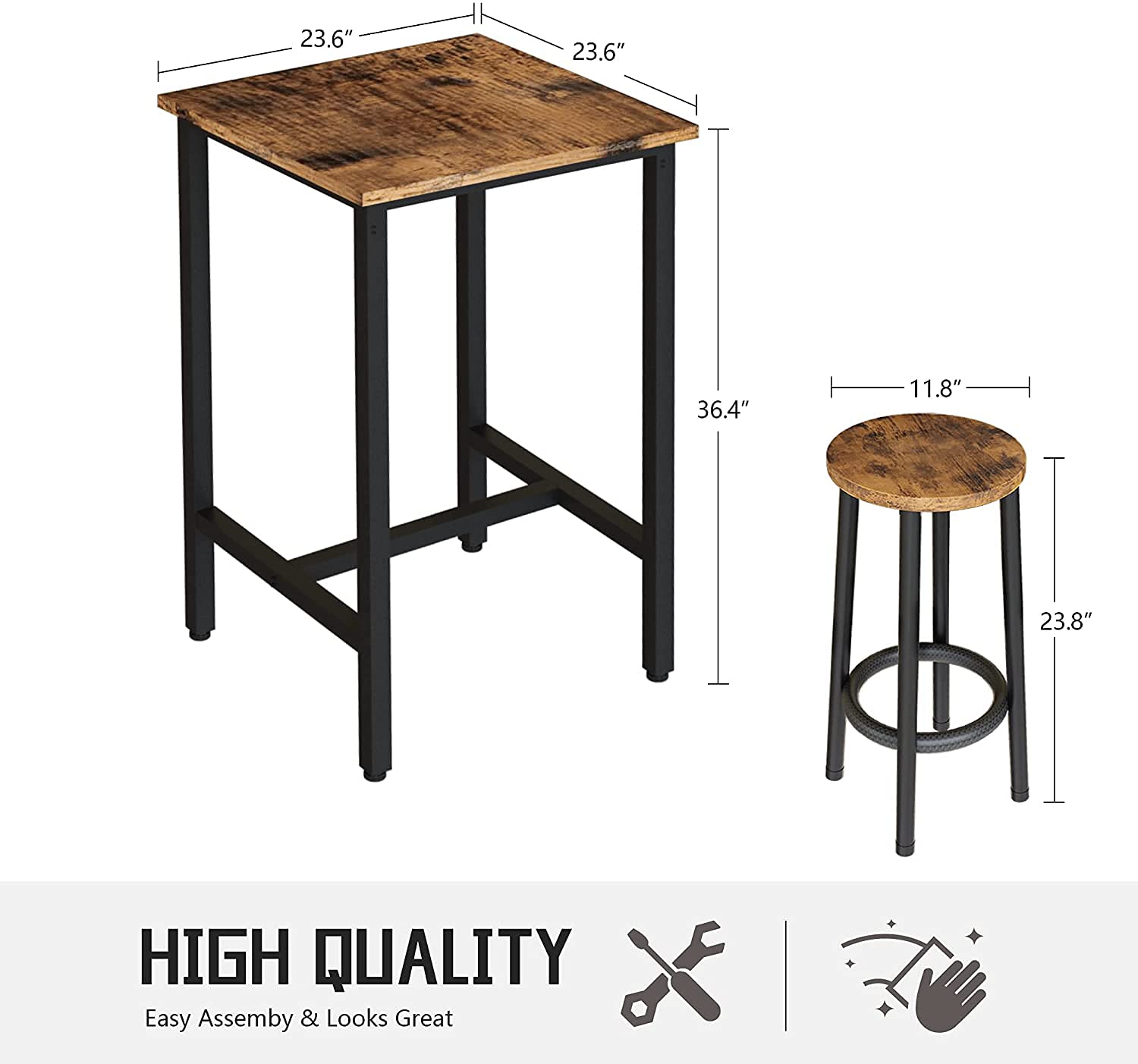 - Sturdy Construction: Built with premium MDF and a durable metal frame for long-lasting stability. Each stool supports up to 250 lbs with no wobbling.