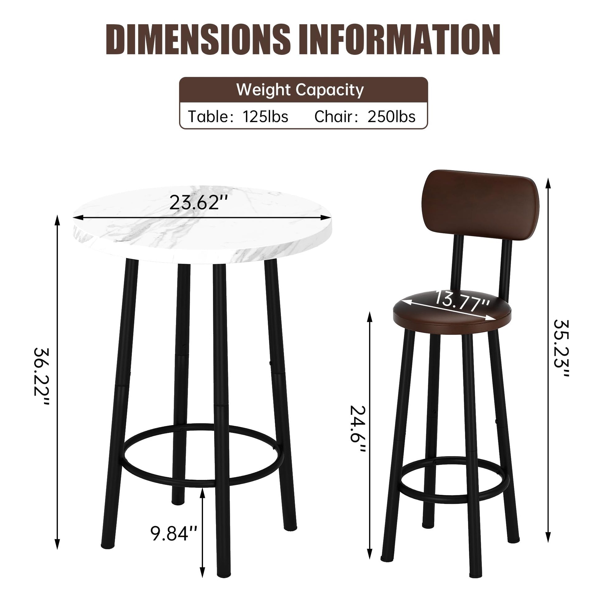- Round tabletop ideal for intimate dining