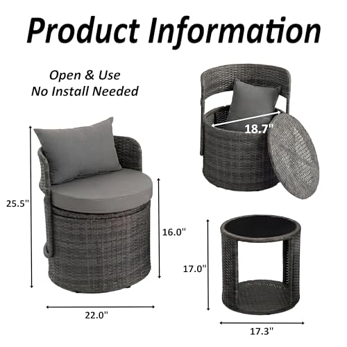 Transform your outdoor space with this versatile 3-piece patio furniture set featuring innovative storage solutions and weather-resistant construction. Perfect for balconies, patios, gardens, and poolside areas.
