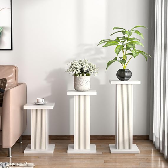 Elevate your indoor and outdoor spaces with this versatile 3-piece wood plant stand set. Perfect for displaying multiple plants, flowers, party decorations, or cakes, these pedestal stands bring functional elegance to any room.