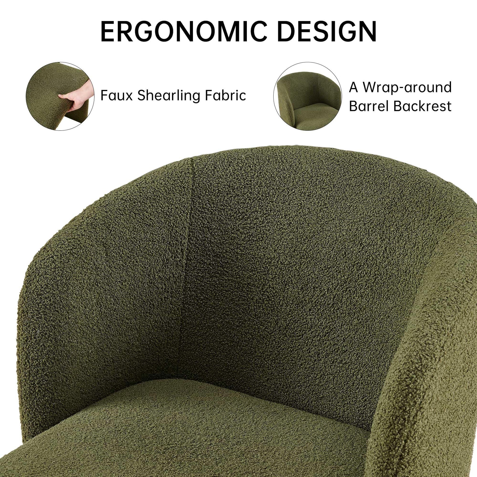 - Dark green faux fur fabric upholstery adds luxury and comfort