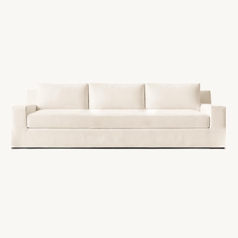 Experience cloud-like comfort with this oversized 3-seater sofa featuring premium duck down filling and a cotton-linen blend fabric. The removable, machine-washable slipcover makes maintenance effortless, while the reinforced metal frame ensures lasting durability.