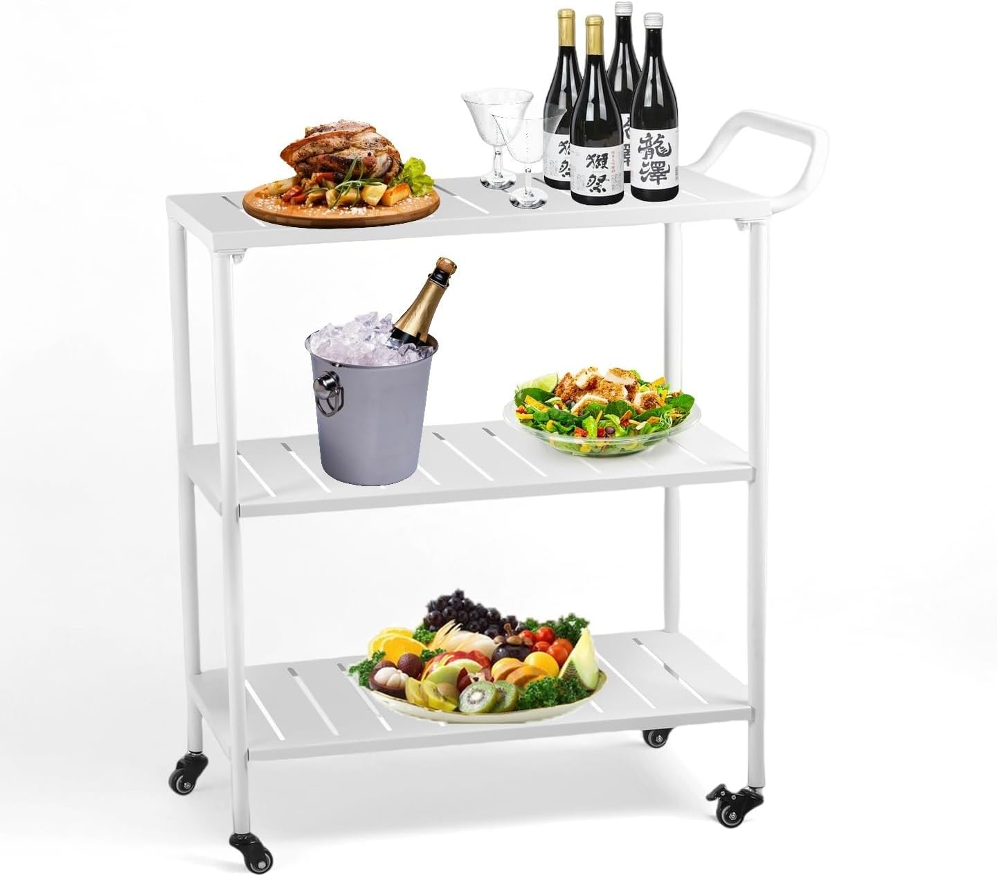 3-Tier Metal Rolling Bar Cart with Lockable Wheels