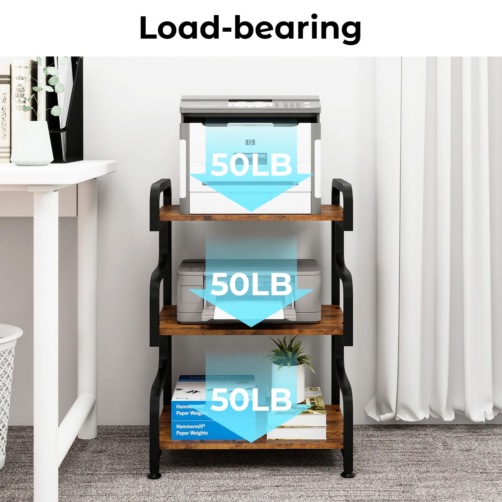 3-Tier Printer Stand with Wheels Movable Storage Cart