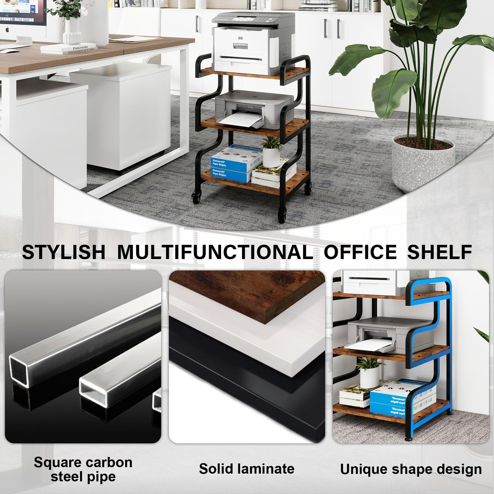 This versatile 3-tier storage cart combines functionality with retro industrial style. Featuring smooth-rolling wheels for easy mobility, this multi-purpose shelf rack serves as an ideal solution for organizing printers, scanners, media players, files, books, or kitchen appliances like microwave ovens.