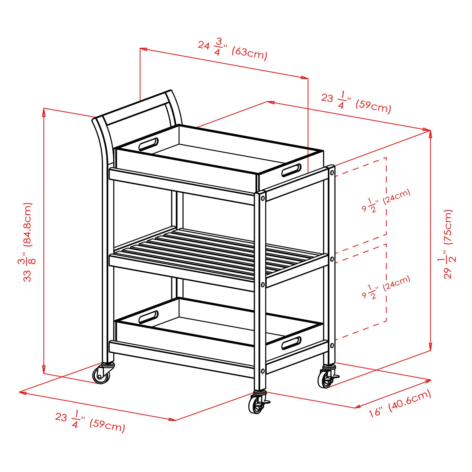 | Features | Wheels, Multi-tier storage |