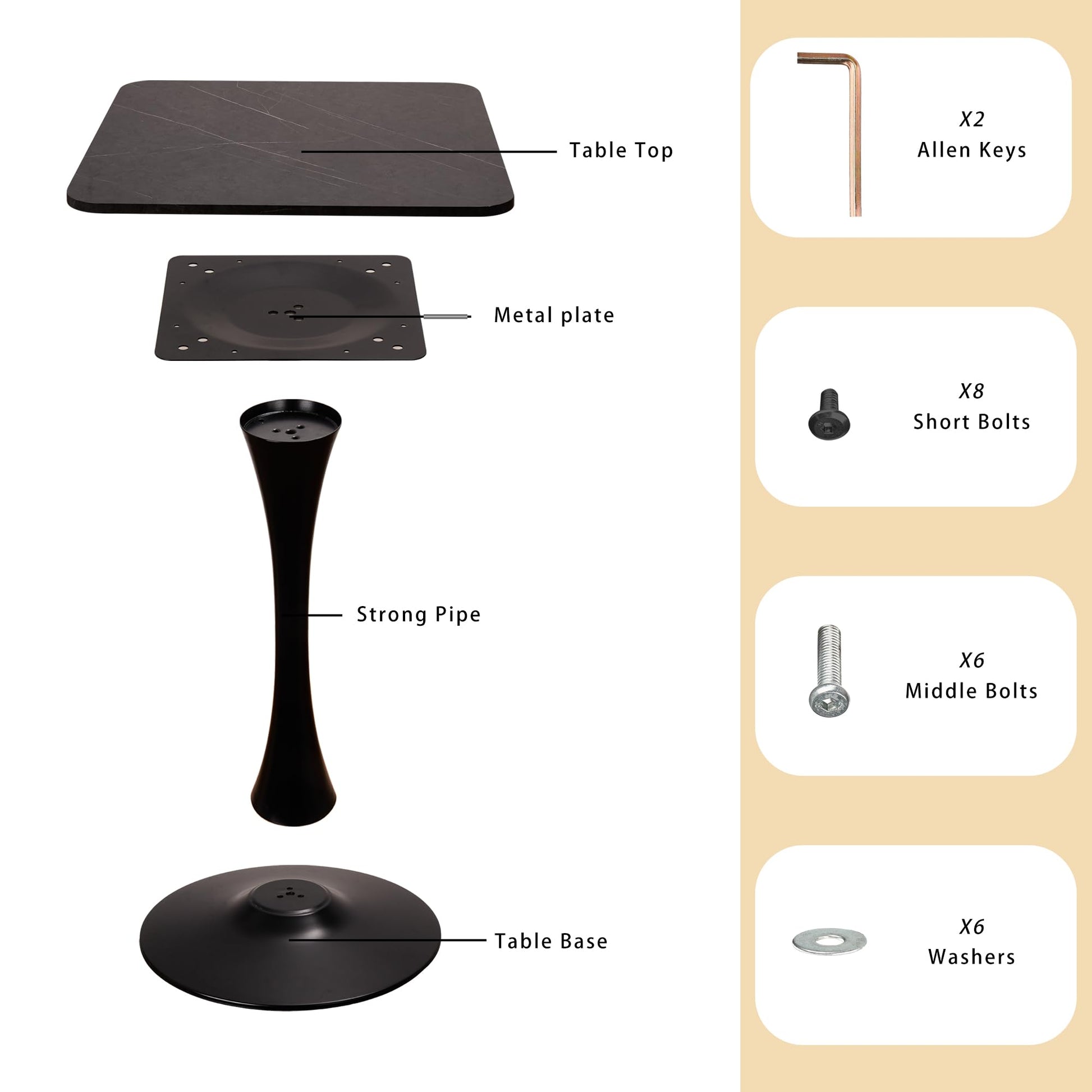 This modern bistro table combines elegant design with practical functionality, featuring a stunning faux marble top and sturdy pedestal base. Perfect for small dining spaces, breakfast nooks, or as a stylish coffee table.