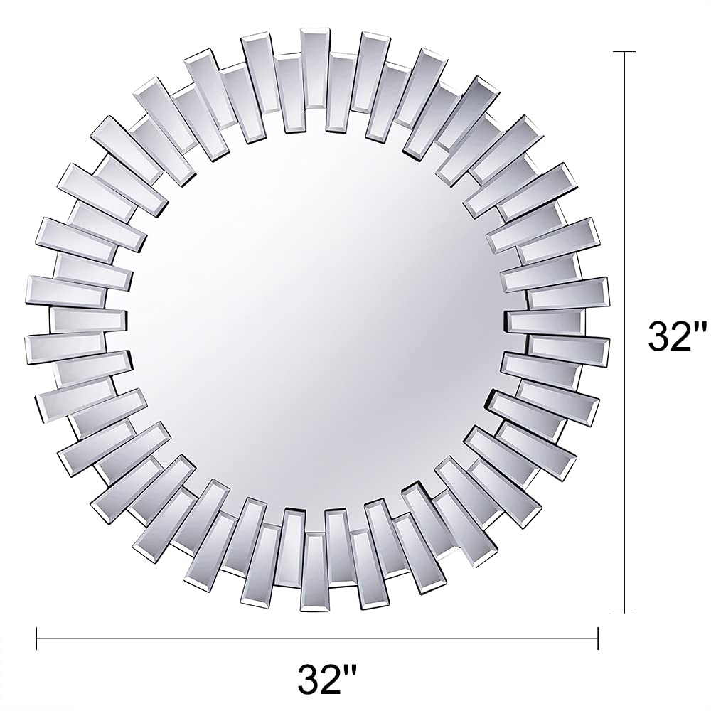 32 Inch Round Decorative Mirror with Beveled Glass Frame