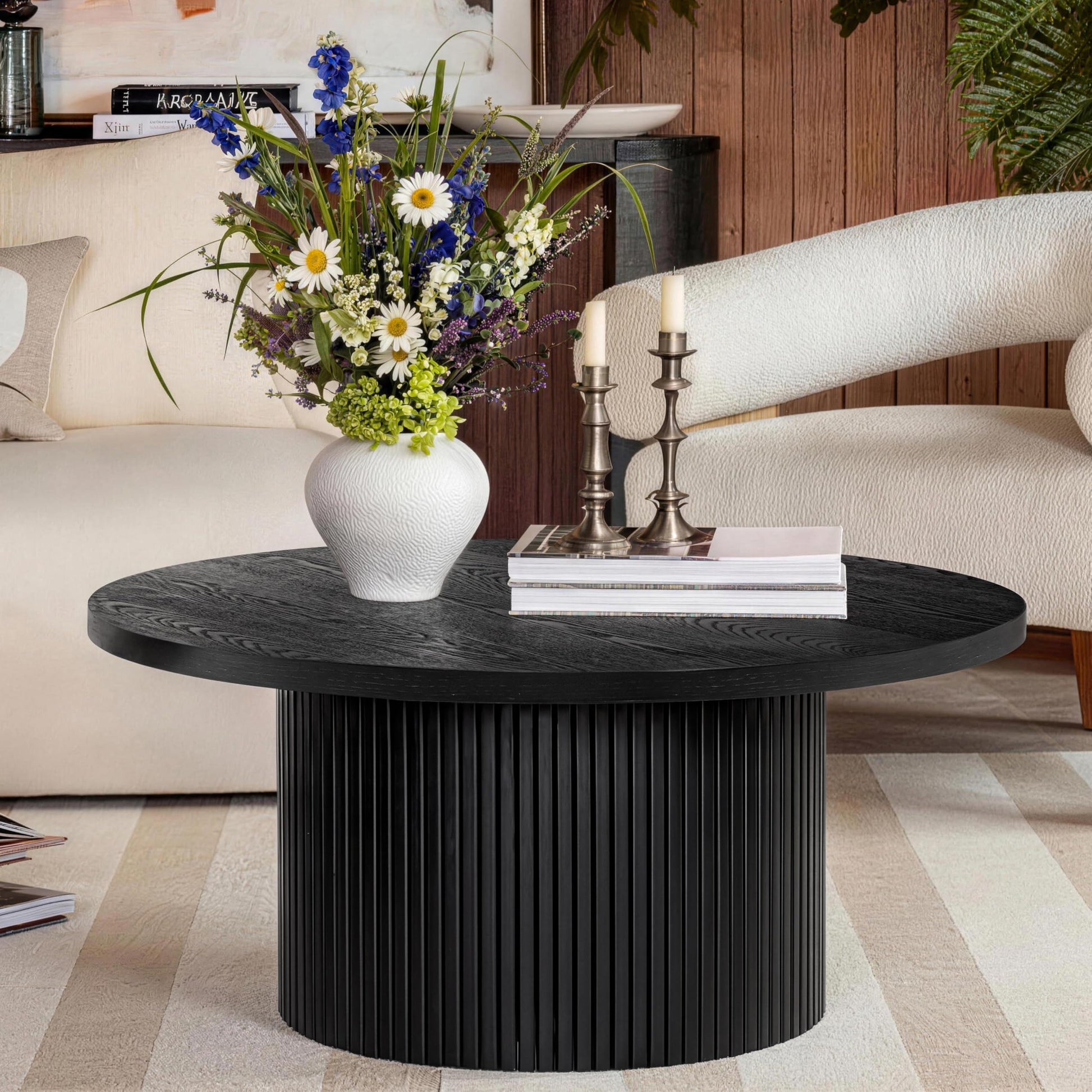 35.5 Inch Round Coffee Table with Fluted Wood Base