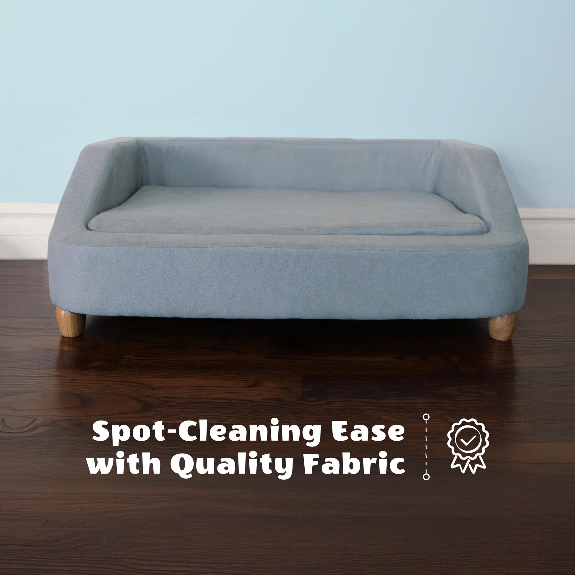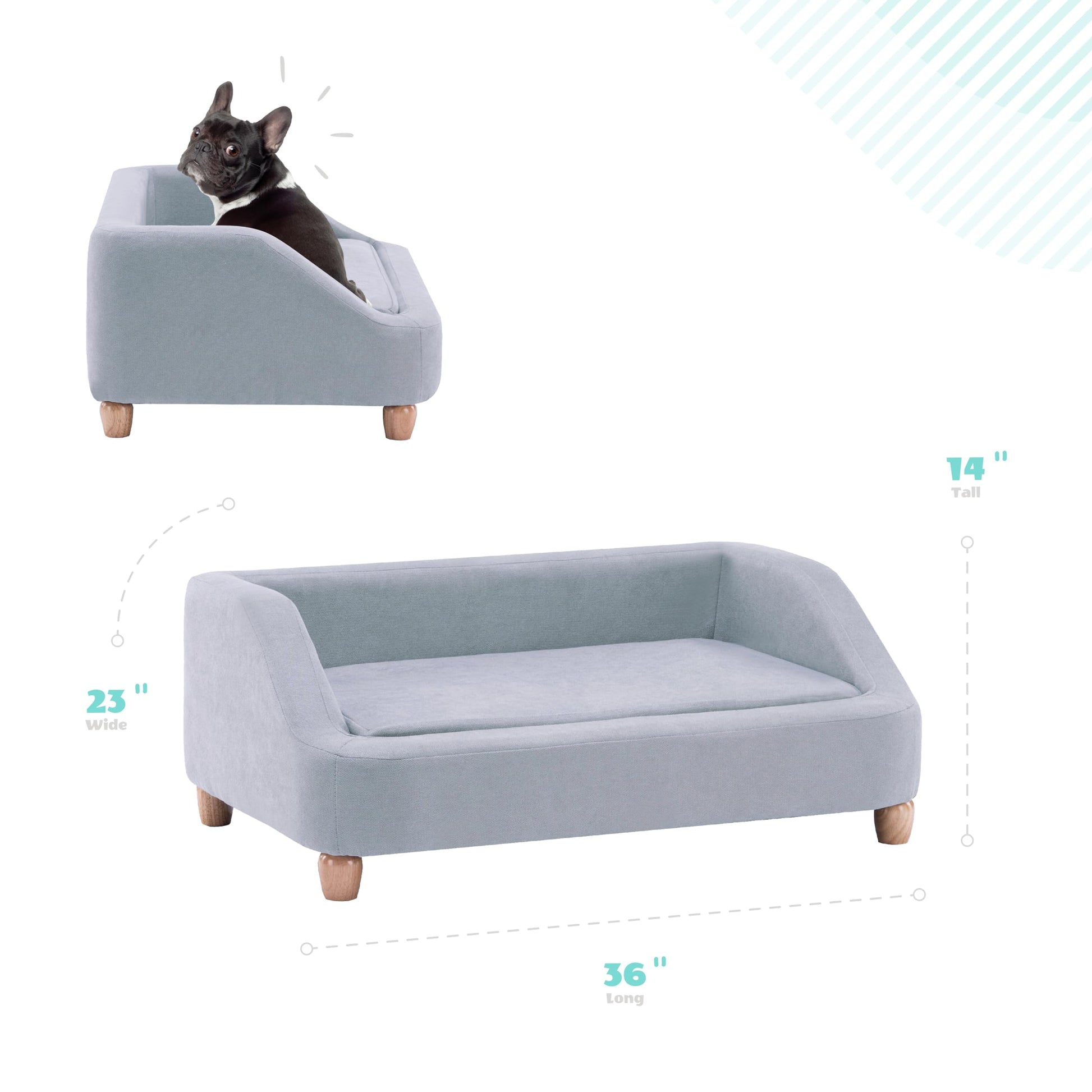 Pamper your furry friend with this elegant elevated dog bed featuring sturdy natural wood legs and plush microfiber upholstery. This durable dog sofa provides a comfortable sleeping spot while adding sophistication to any room in your home.