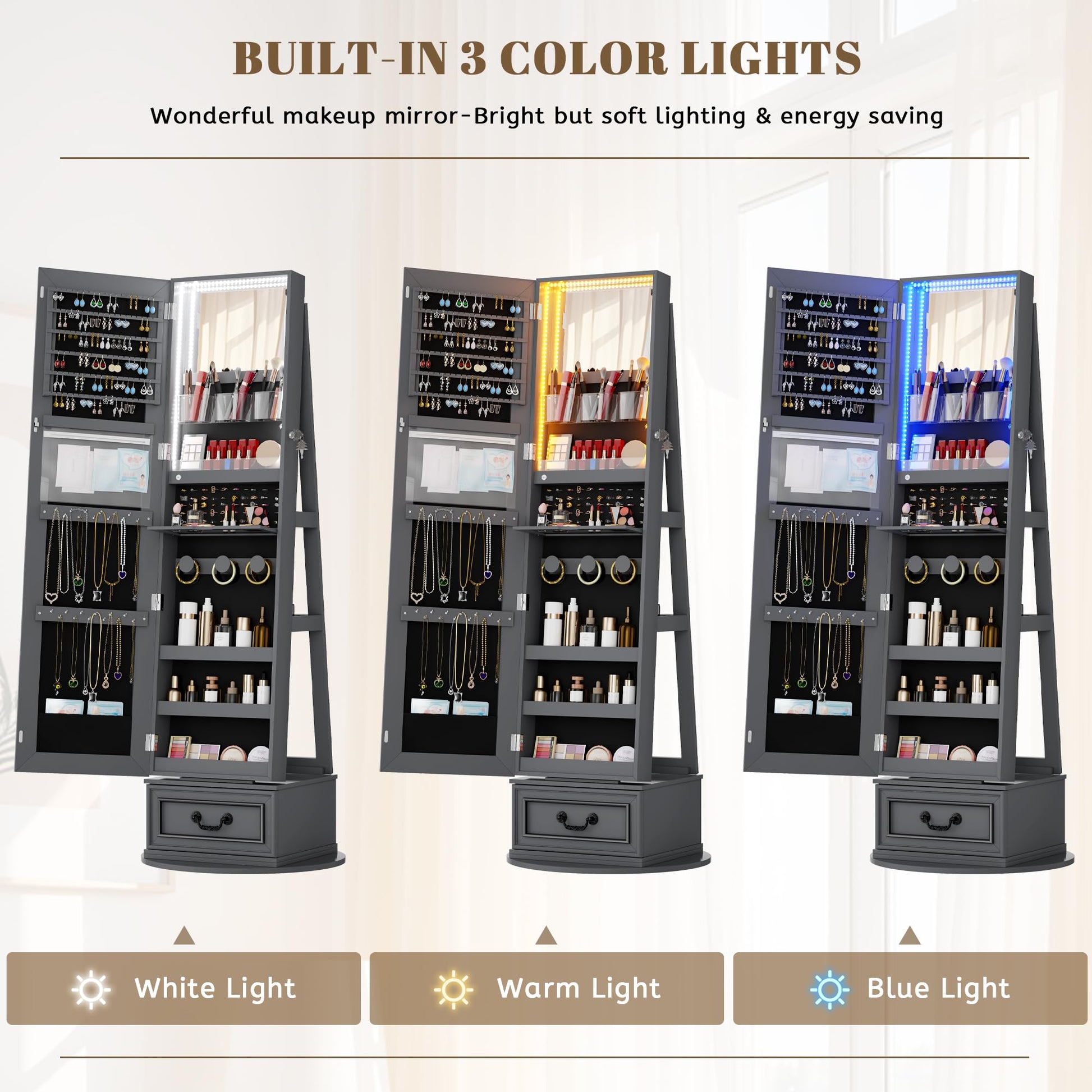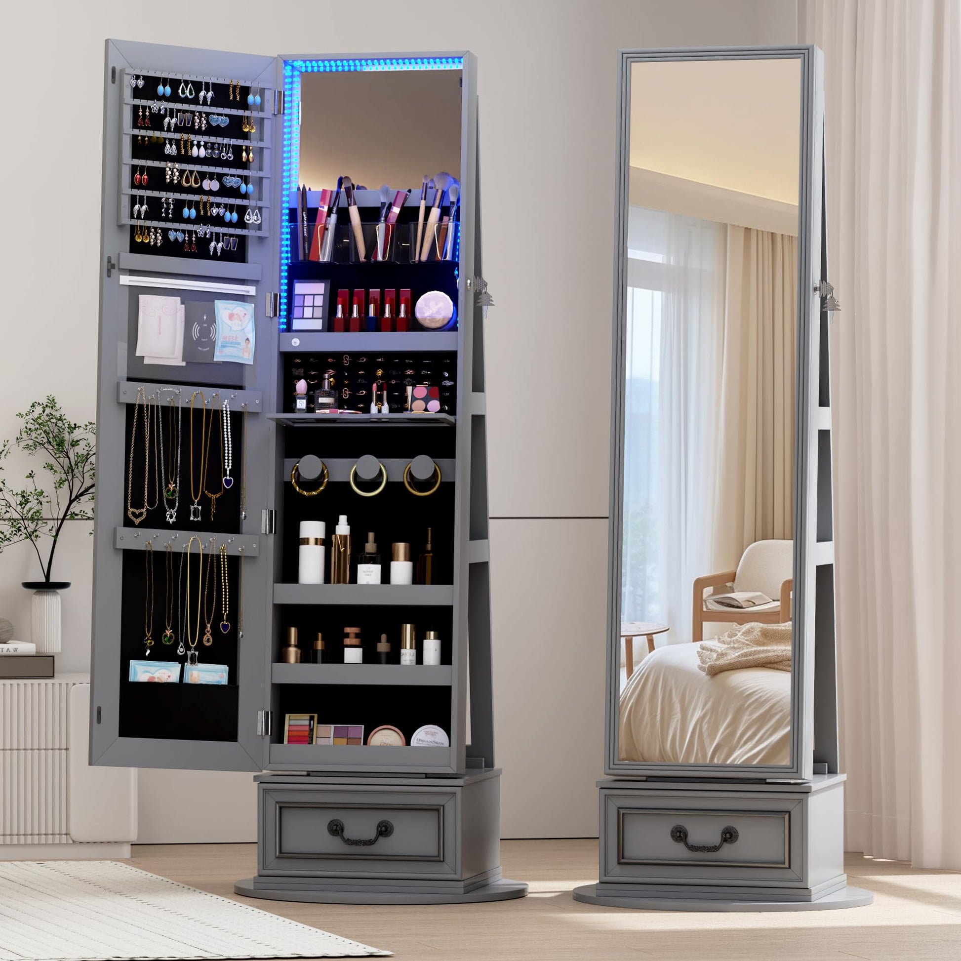 360° Swivel Jewelry Armoire with Full Length Mirror