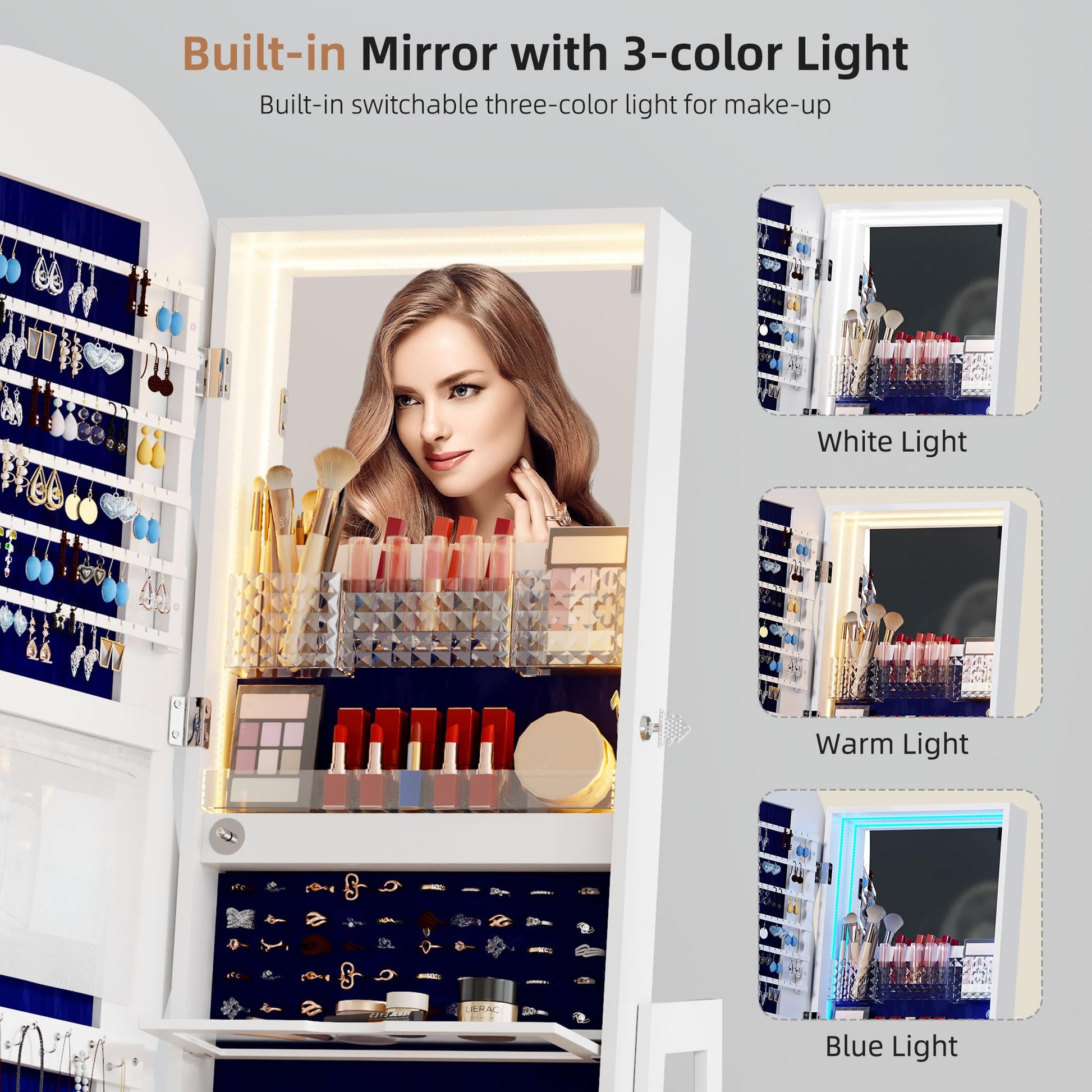 This versatile jewelry organizer combines functionality with style, offering ample storage space for necklaces, bracelets, rings, earrings, and cosmetics. The LED lighting ensures you can see every detail while selecting your accessories.