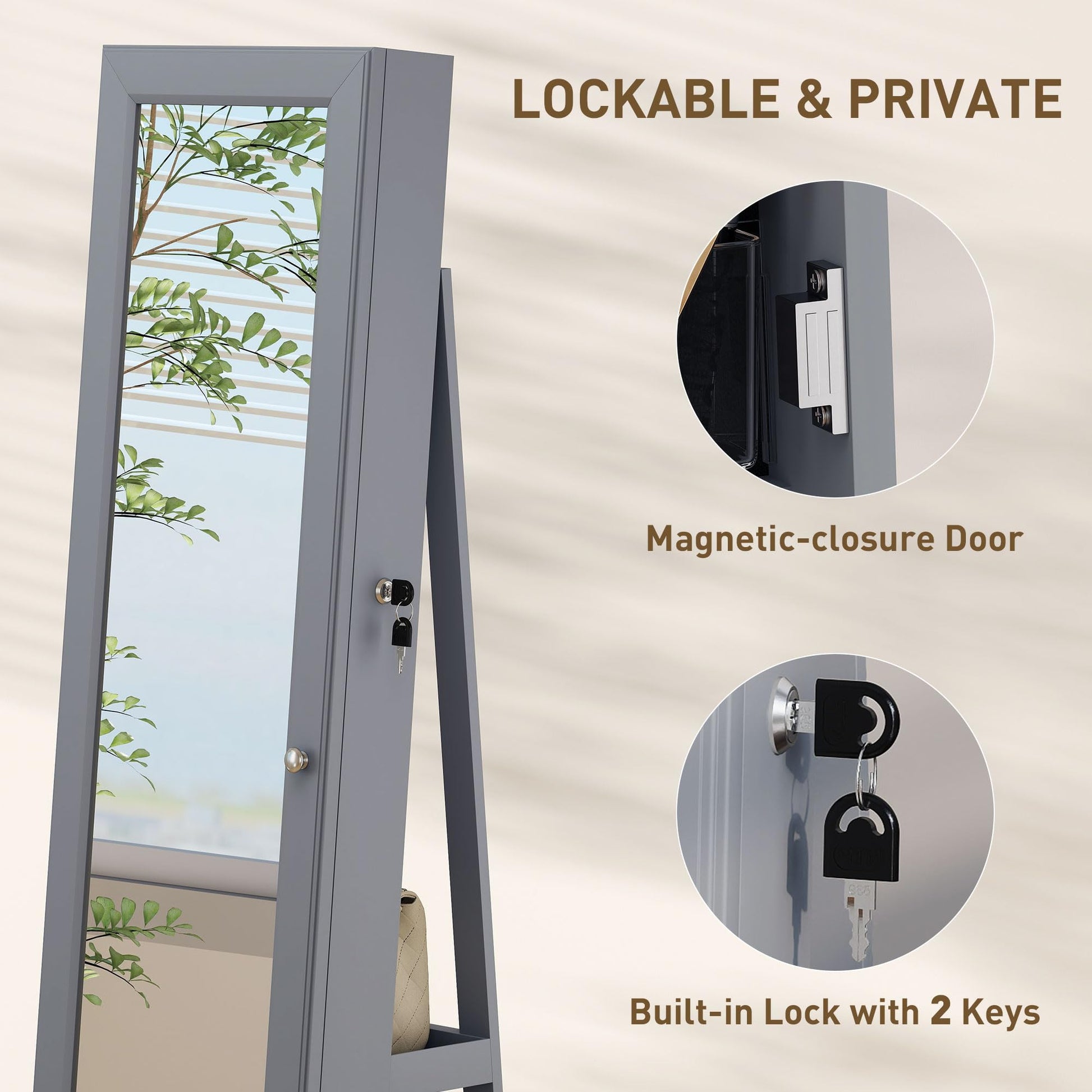 | Features | 360° Swivel, Lockable, Full-Length Mirror, Interior Mirror |