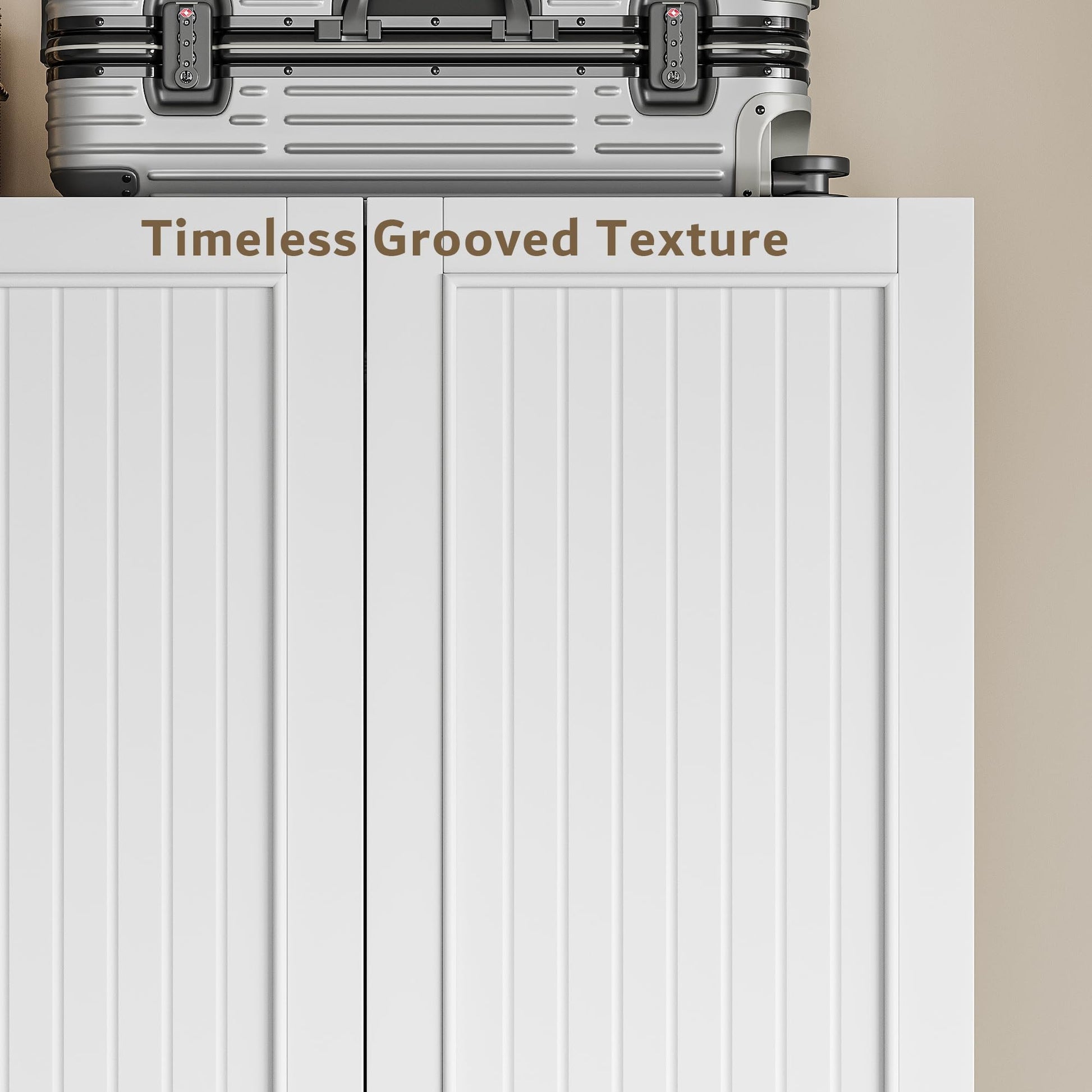 - Elegant Design: Vertical panel detailing with round black handles in classic white finish complements any décor