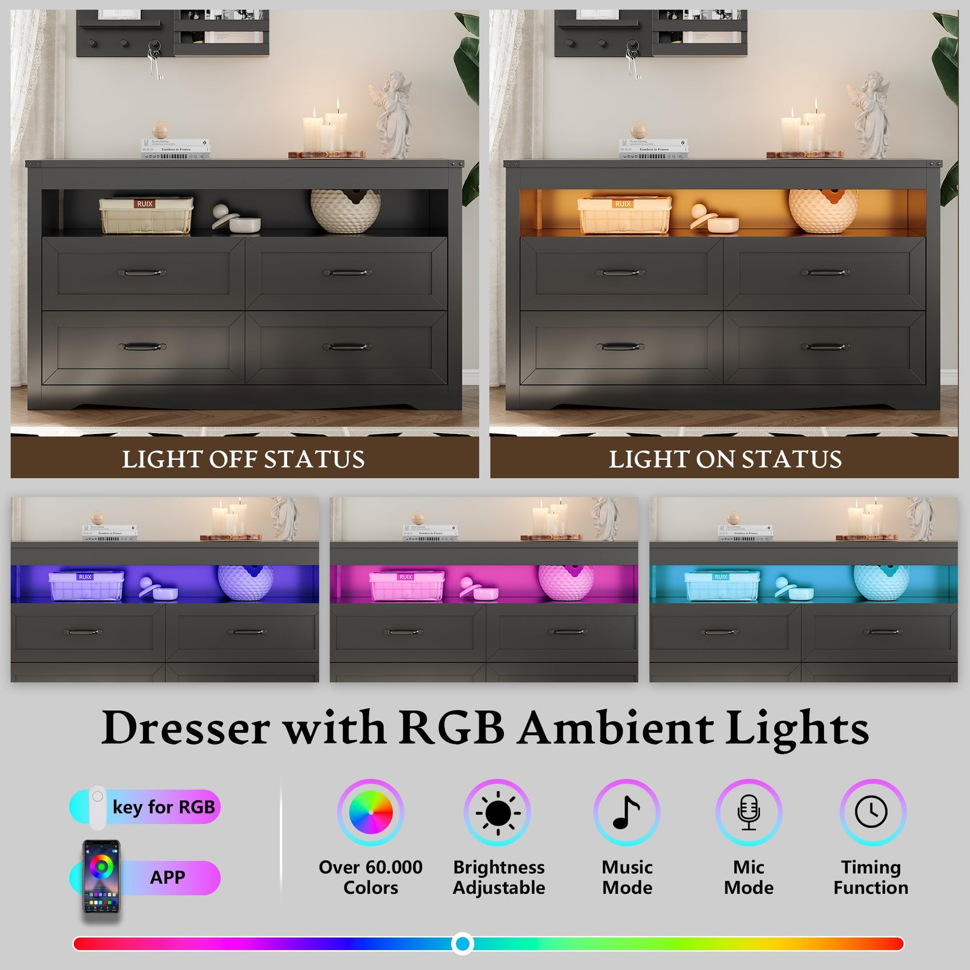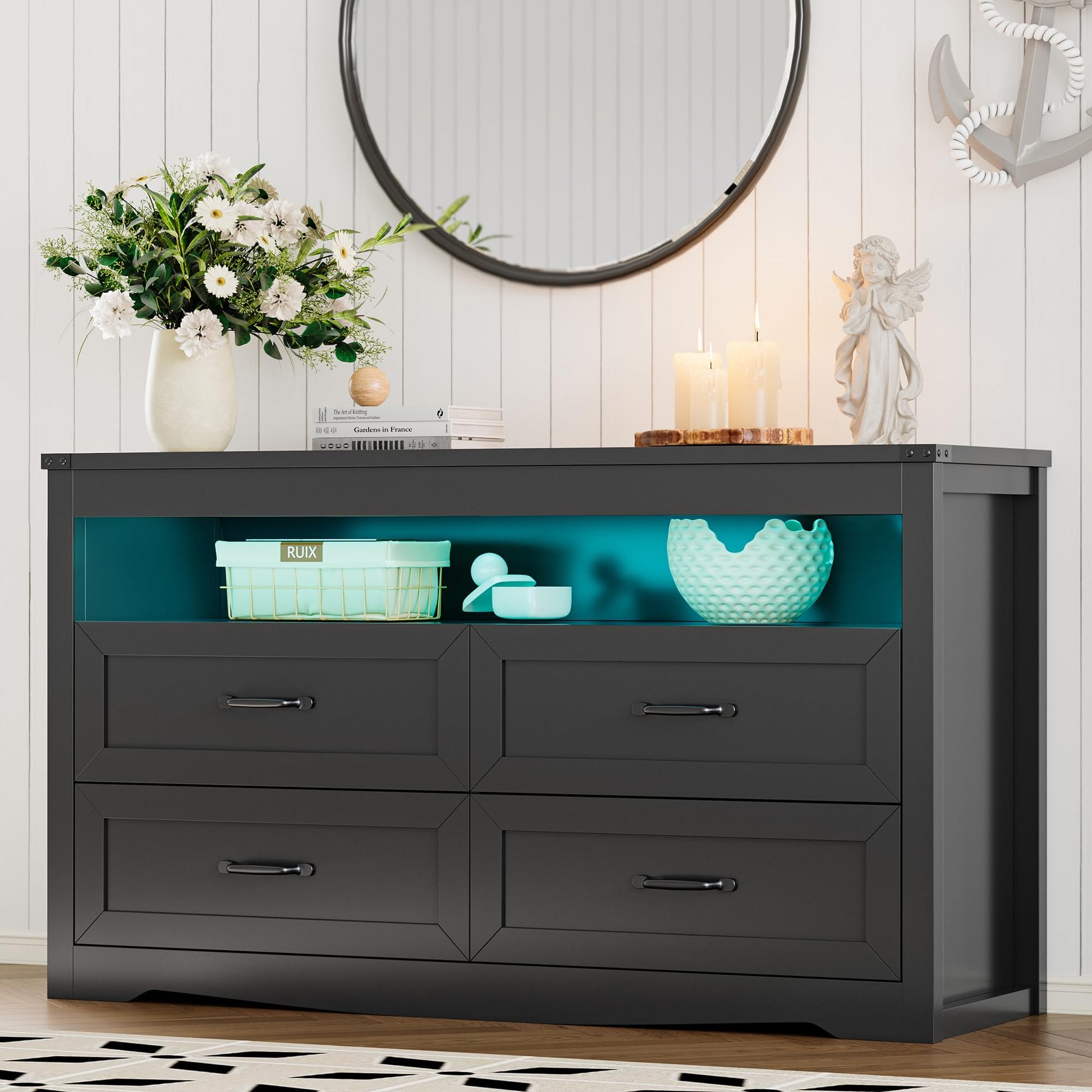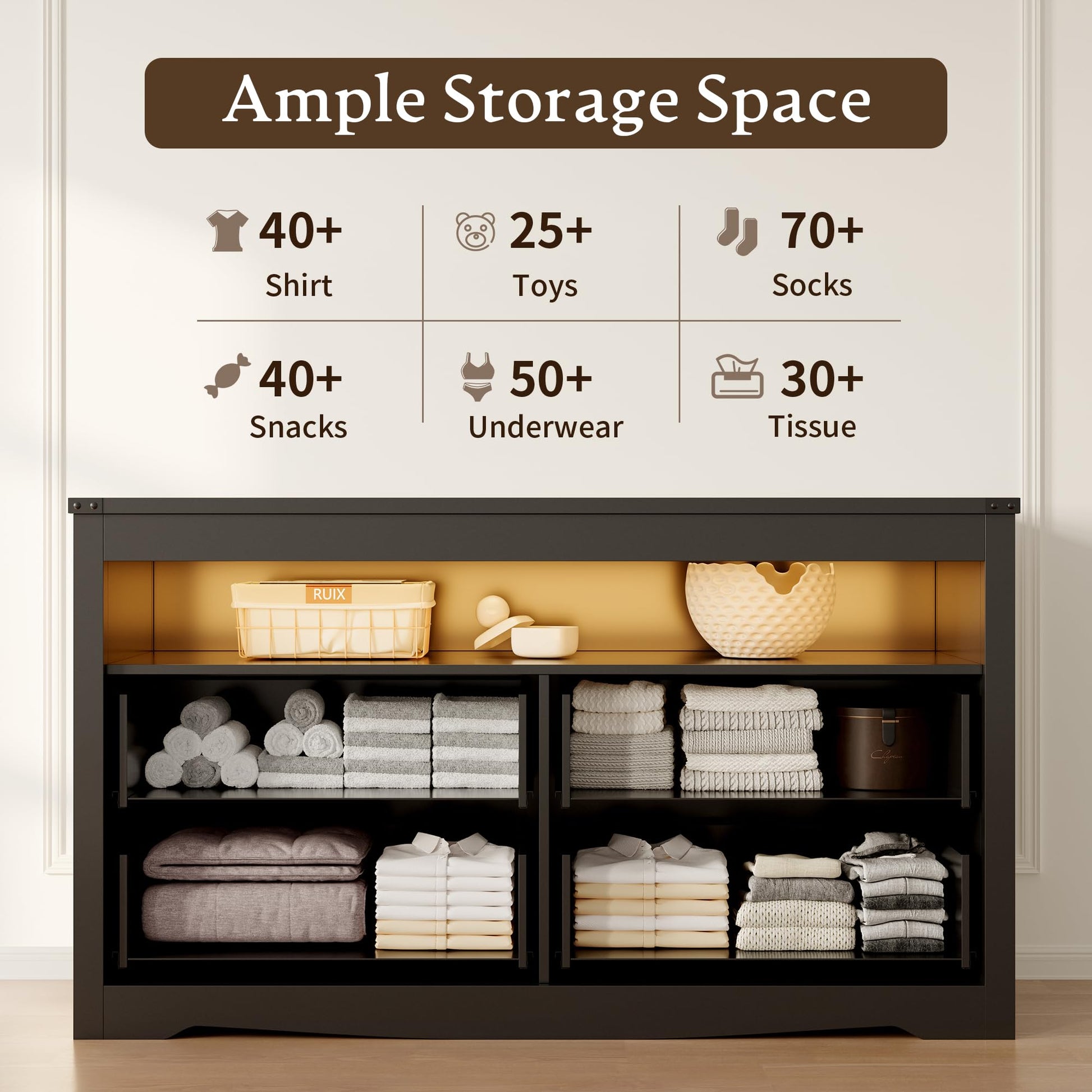 This farmhouse-style dresser combines rustic charm with modern functionality, featuring smart RGB LED lighting and ample storage space. Perfect for bedrooms, living rooms, entryways, or hallways.