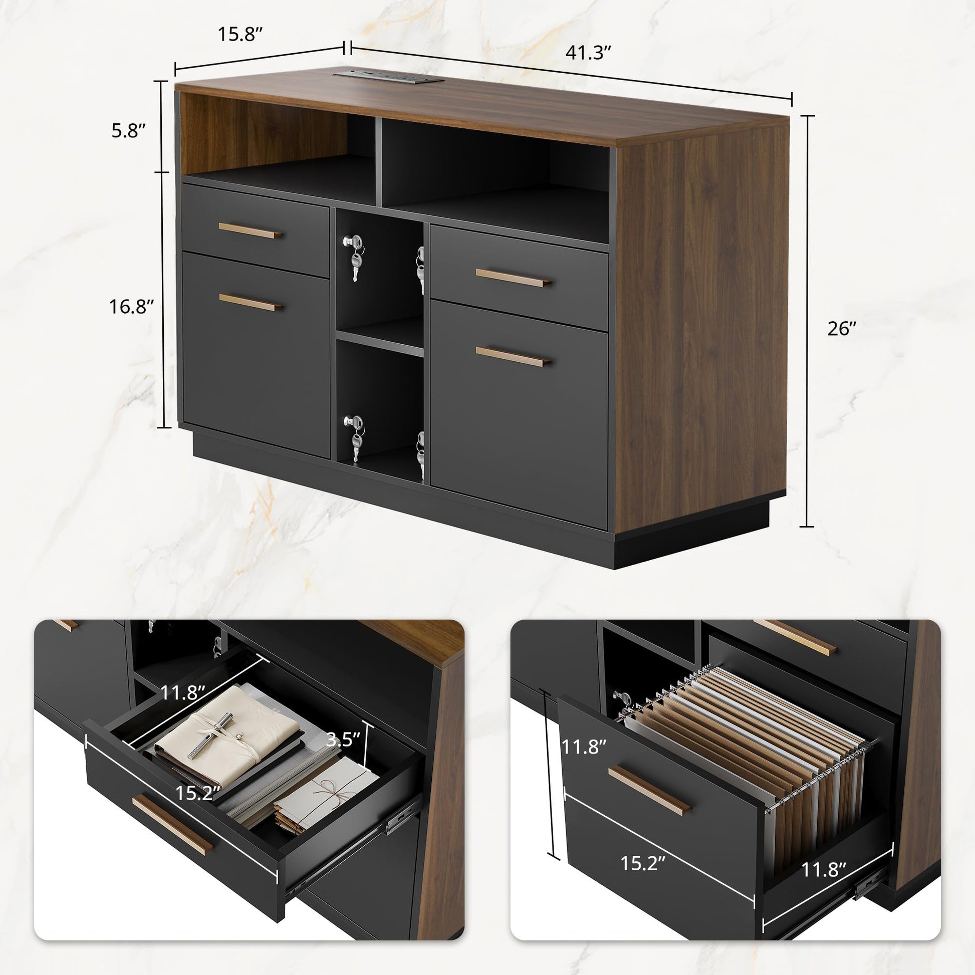 Transform your workspace with this sophisticated 4-drawer filing cabinet that combines elegant black walnut finish with modern functionality. Designed for the professional home office, this lateral file cabinet offers secure storage, integrated power solutions, and versatile organization for all your important documents.